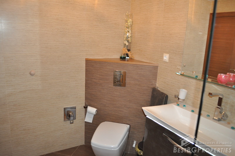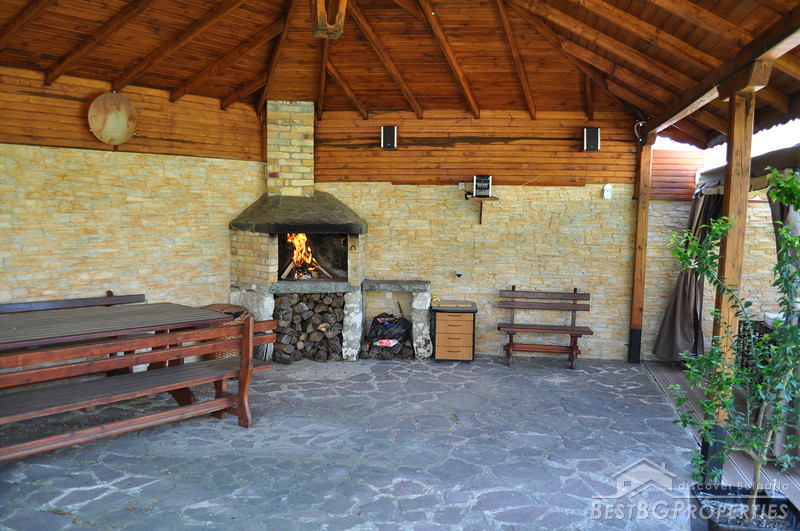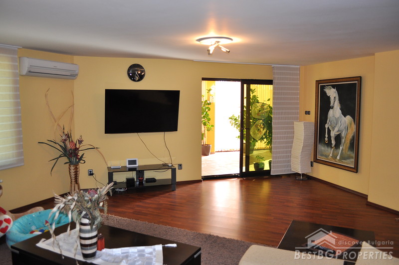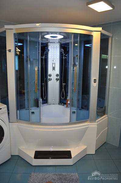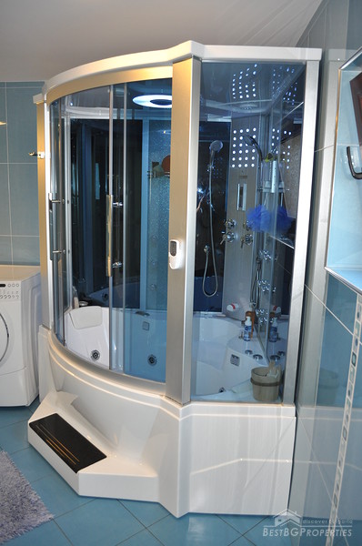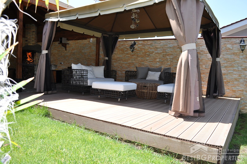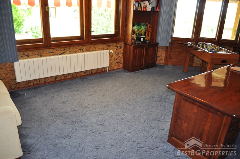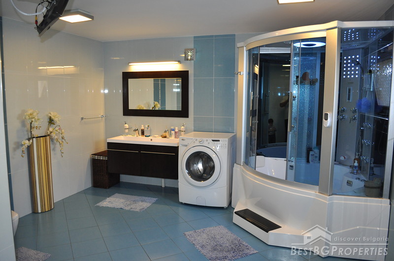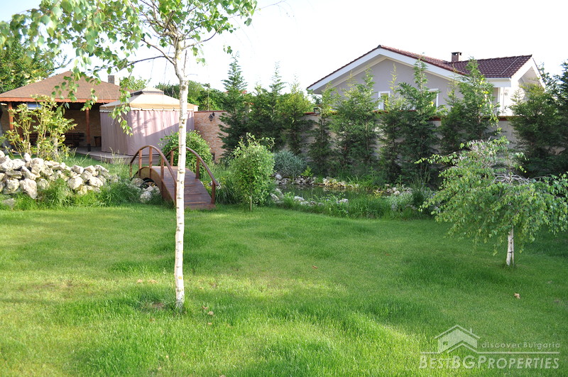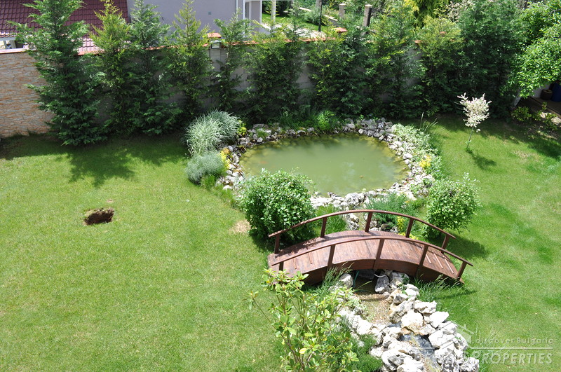 The property comes with a spacious plot of land with size 1130 sq m. It has a beautiful garden which offers tranquility and exotic atmosphere planted with evergreen pines, birches, willows, flowers and shrubs. The garden has automatic irrigation system, sinking hydrants, pump, and humidity sensors. There is also a pond with two waterfalls, BBQ built from stone and wood, tent with rattan furniture, automatic gates with remote control, 24 hour video surveillance with 8 video cameras, 3 garages with auto opening doors with remote, outside lightening with sensors.