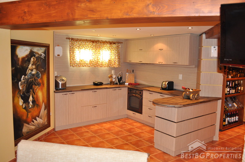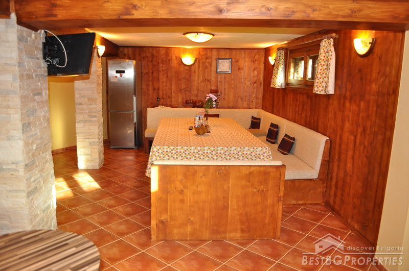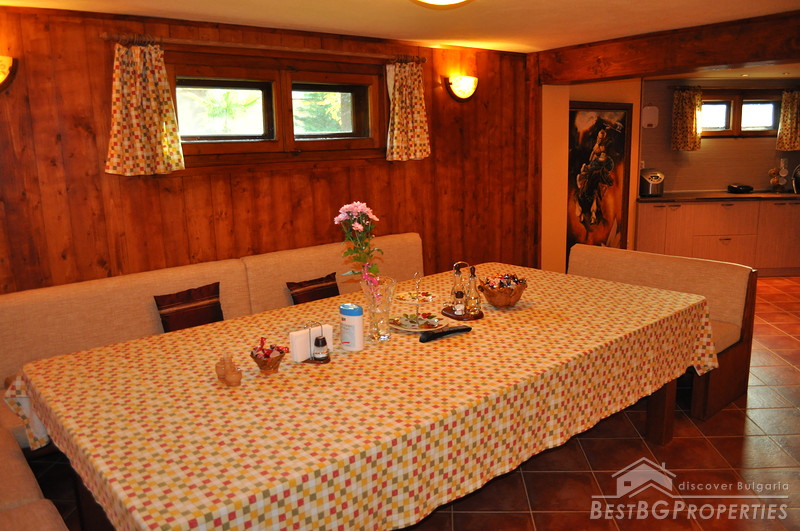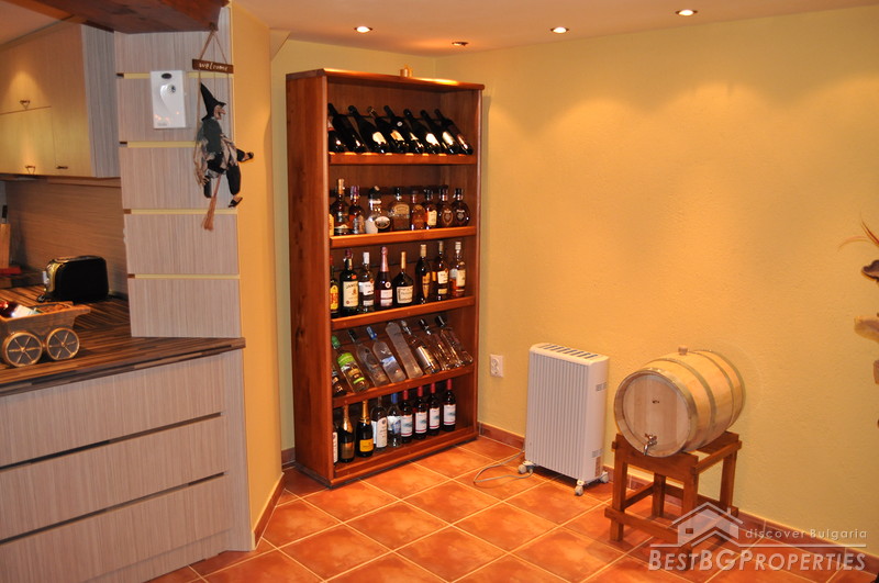 The distribution of the premises inside the house is as follows: On the first floor there is a living room, kitchen, winter terrace, large bathroom with shower cabin and steam bath. The second floor consists of two bedrooms, children’s room, bathroom and a laundry. The house has central heating diesel fueled.