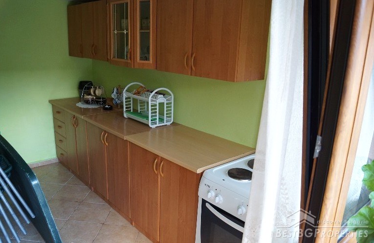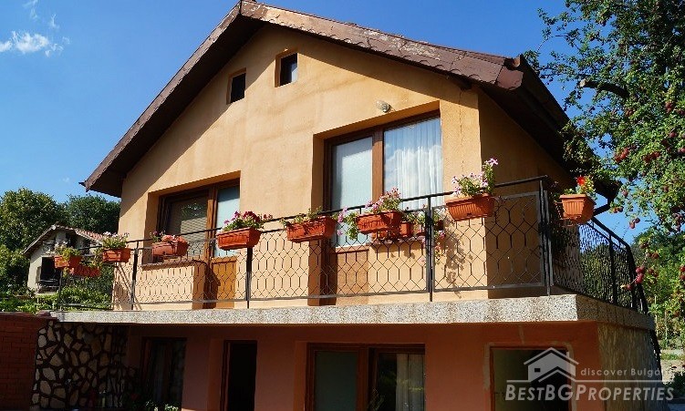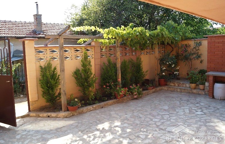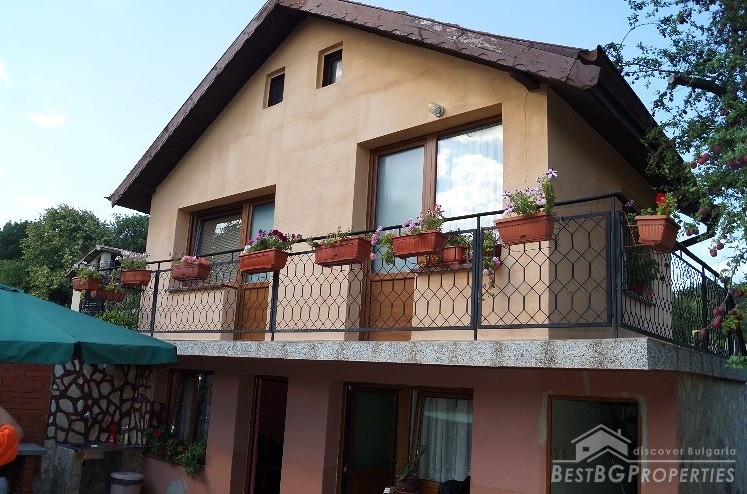The house is two storied and comprises of two bedrooms, living room and a kitchen. It is built on a plot of land with size 570 sq m, surrounded from all sides by a fence. In the yard there is additional outbuilding with area 54 sq m. In the garden there are lots of fruit trees, flowers and a vinery. The property is connected to all communications – water and electricity.