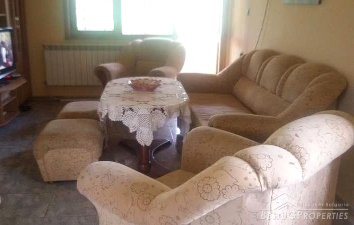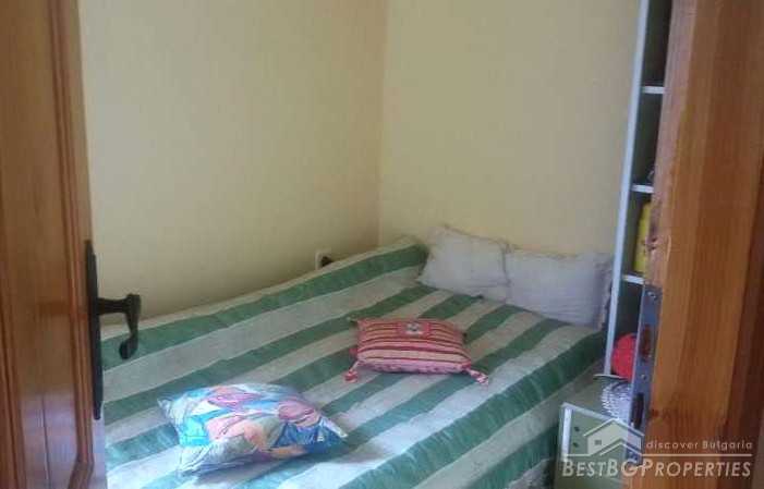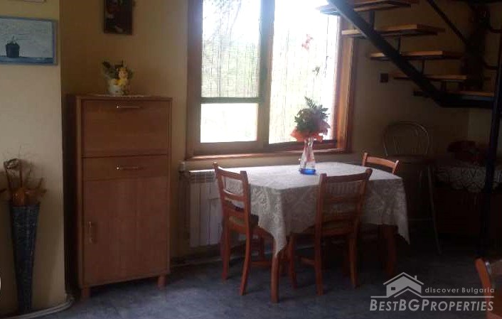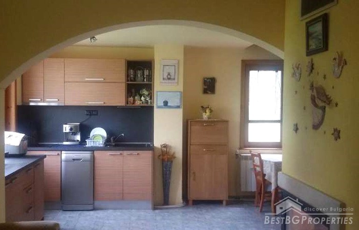 The offered house has three floors. The ground floor is with an area 70 square meters, consisting of a large entrance hall, one bedroom, living room, bathroom and a separate toilet. The first floor has a living room with kitchen, guest room with fireplace Deauville and underfloor heating, bathroom and toilet together, large terrace. On the second floor there is a hallway, two bedrooms, bathroom and toilet together and a terrace. The total living area is 189 sq m.