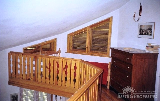 The dining area has three large windows to the south and southwest. The kitchen also has a window and access to the terrace with outdoor fireplace to the southwest. There is a bathroom and toilet. Spiral staircase leads to the second floor which comprises of two bedrooms. One of the bedrooms has a terrace to the south and the other - a window to the northeast.