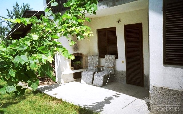 The property also includes a garage. There are all communications - electricity, lots of water, asphalted road, option to install security system. The house is for sale furnished. The yard has total area of 1050 sq m - it is cultivated with fruit trees (apples, pears, plums, cherries, hazelnuts, walnuts) and vines, flowers and ornamental trees. The price includes a gasoline mower and other farm fixtures. The property is 200 meters away from a swimming pool. Friendly neighbors. The villa is 9 years old. The total living area is 120 sq m.