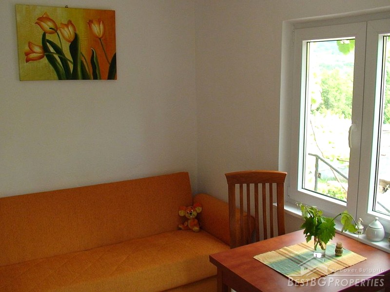 The absolutely renovated property is situated in a picturesque area, right above a beautiful and nice village, located just 25 km away from the old capital of Bulgaria, Veliko Tarnovo. The nearby Sofia-Varna motorway is also in close proximity. The village is old, there are traces of middle-age fortress, Thracian funeral, Roman citadel etc. For those who are keen in fishing and water sports, there is a river passing through the village. The settlement is large, with good infrastructure and access all year around. There is a bus stop with regular bus transportation to Veliko Tarnovo and the nearby villages. The village is provided with all necessary amenities such as shops, restaurants, bars, church, etc.