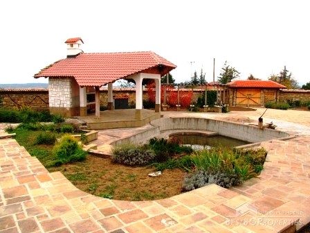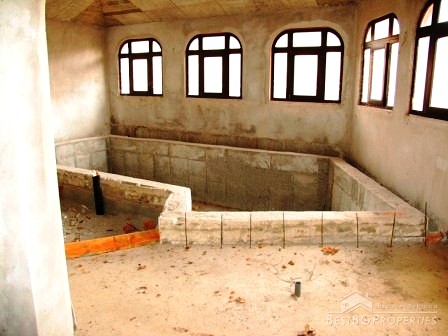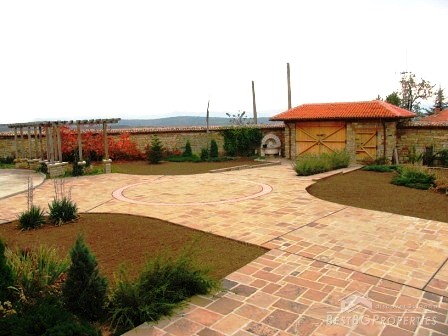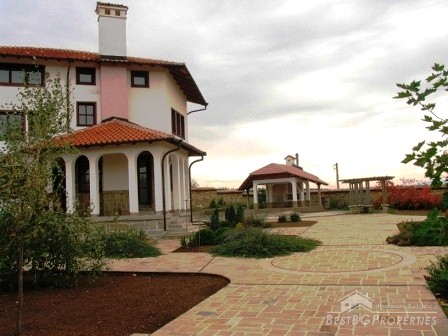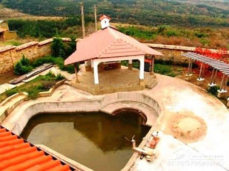 The property which is for sale consists of a large yard, enormous three story building and a house for the staff with two garages. The yard comprises total area of 2260 sq m and the main house has total living area of whole 800 sq m. The house for the staff is 190 sq m large. The main house consists of three stories and 8 bedrooms in total, each with its own sanitary premise. There is also a living room, restaurant, two swimming pools (inner and outer), and place for a fitness room. From the property opens amazing panoramic view over the town of Veliko Tarnovo. The plot is surrounded by a unique stone wall. There is an outer barbeque area next to the pool. Except for you own accommodations this property suits perfect for a hotel or any other investment.