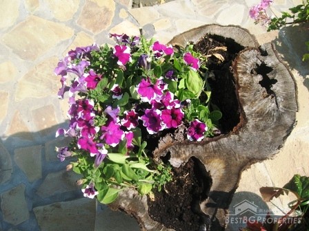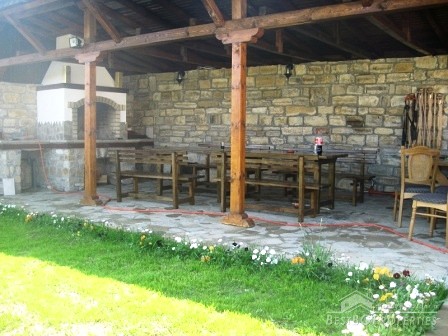 The house comprises three bedrooms. It has 800 sq m of garden area, surrounded by a five-meter stone wall, new wooden gate, BBQ with a stove, traditionally built of stone, and a covered sitting area.