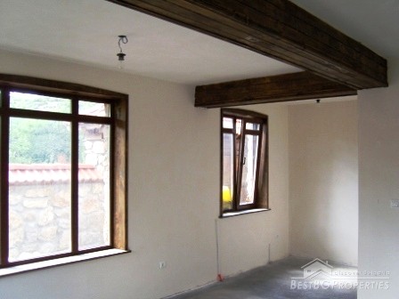 This is a lovely house for sale, located in a nice and cozy village near Veliko Tarnovo. The building has concrete structure, wooden roof. There is a lot of heat isolation because of the mountain climate - 5 cm on the walls, 10 cm on the bays, and 10 cm on the ceilings. The walls are stone built with thickness - 50 cm