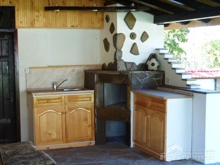 The house is newly built, fully furnished. It has about 700 sq m of garden area included in the price. There is around of 50 sq m. BBQ and outdoor kitchen. Also the property comprises a room specially designed for storage of wood for the barbecue. The whole house is surrounded by a solid fence, covered with stones. The whole yard is overgrown with grass and cypress trees. The road before the house was littered with stones and surrounded with flower gardens planted with cypresses. There is a parking for 2 cars.