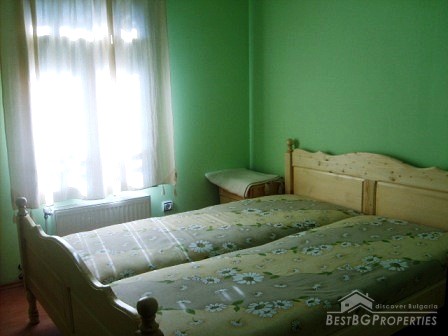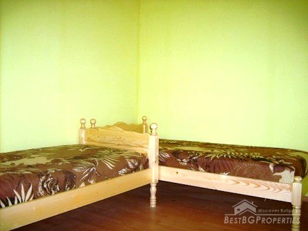 The house itself has 3 bedrooms, bathroom and a toilet. The furnishing of the bedrooms includes a bed, bedside tables and wardrobe. One of the bedrooms is equipped with two beds instead of one double bed. The basement is rearranged into a kitchen with tavern. The whole house has central heating.