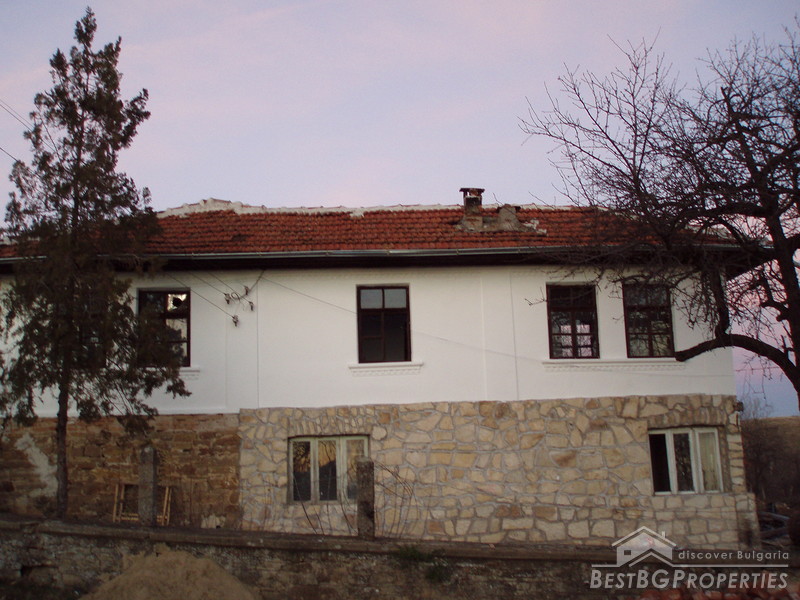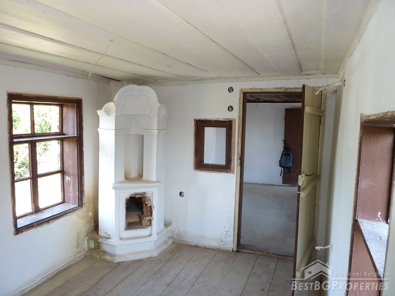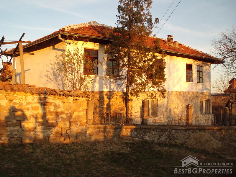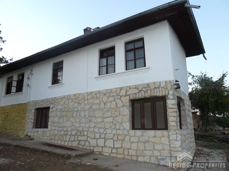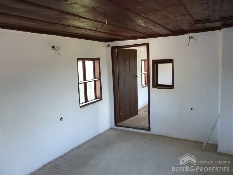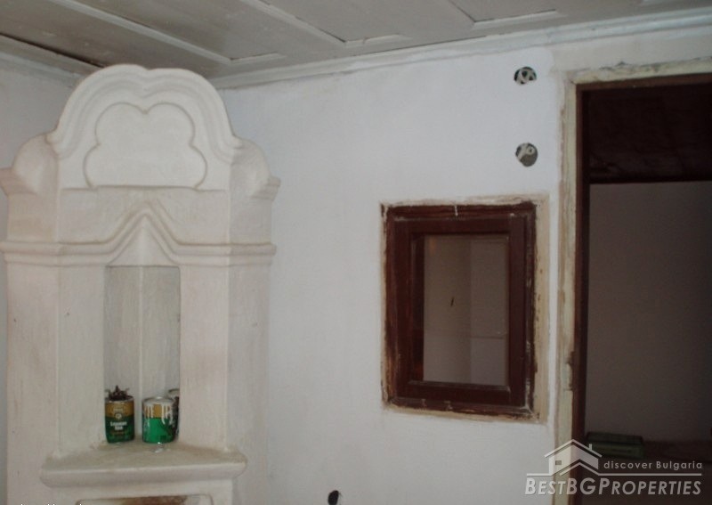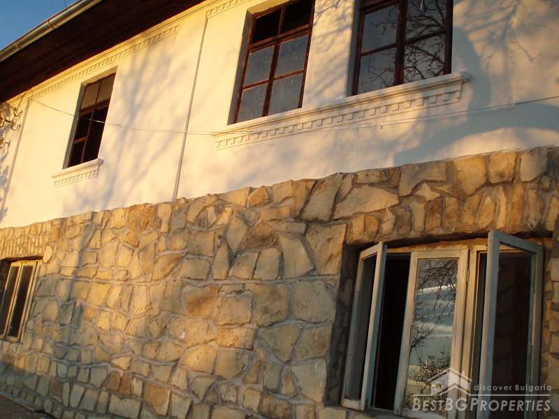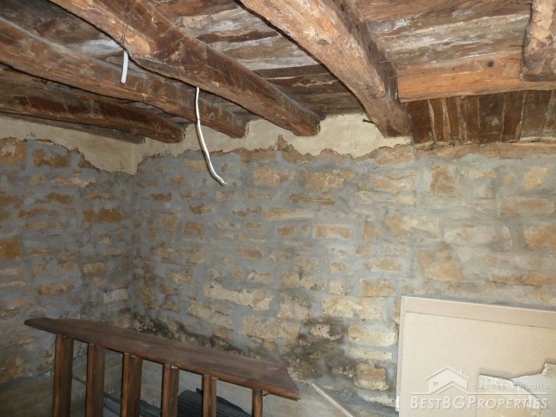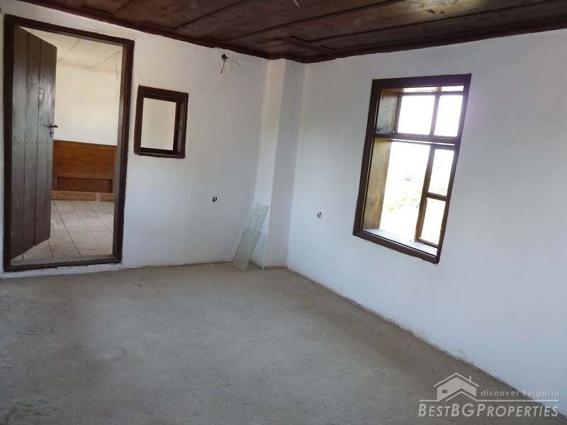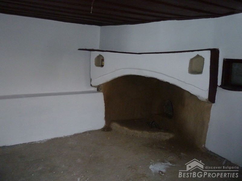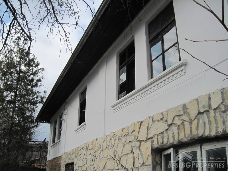 The house has total living area of 200 sq m distributed between two residential floors. It is pretty large with excellent location, south-facing view. On the first floor there are two rooms, stone-built tavern, kitchen with oven and another room. The second floor comprises 4 rooms and a wooden terrace. The yard is also very large, having total size of 4000 sq m. From the garden opens wonderful view of Stara Planina Mountain. The house was renovated in the typical for this region architecture and style. There are some repairs left to be done since the renovation has not finished completely.