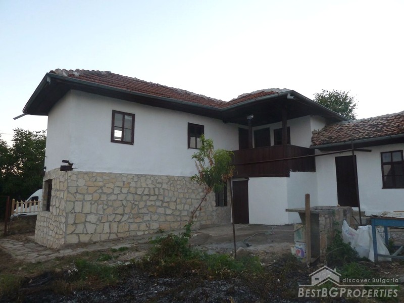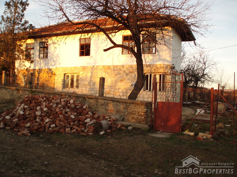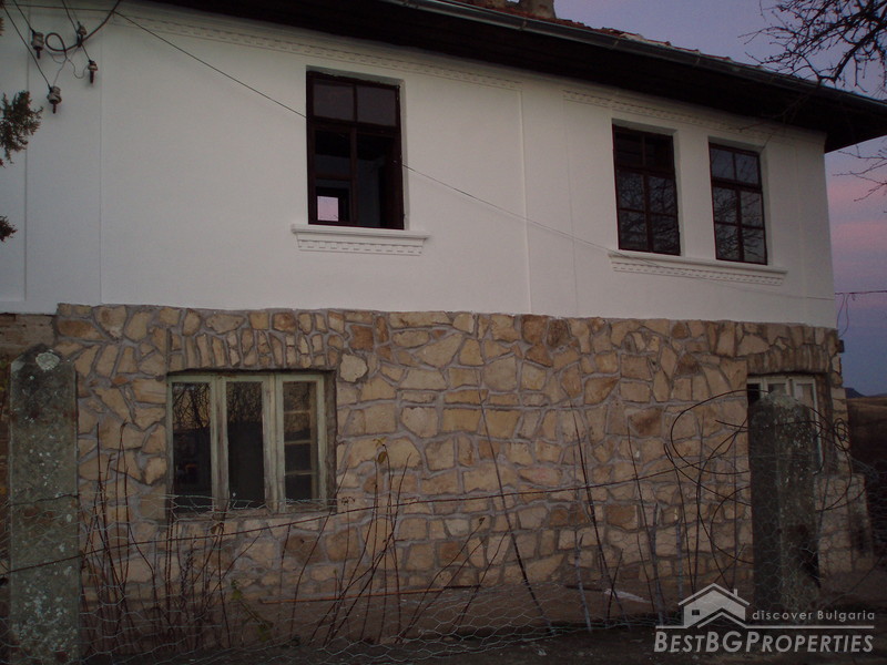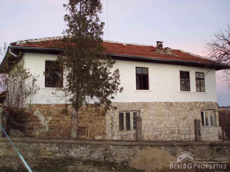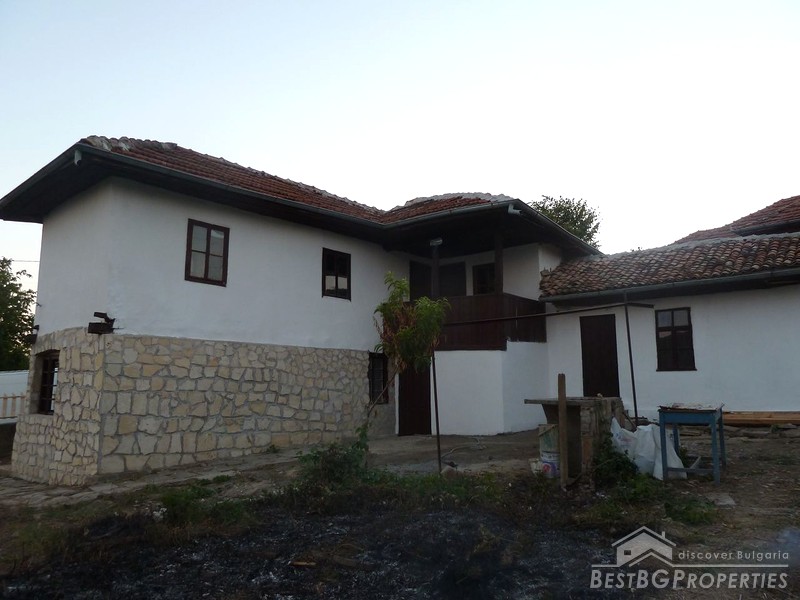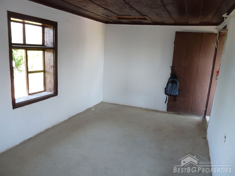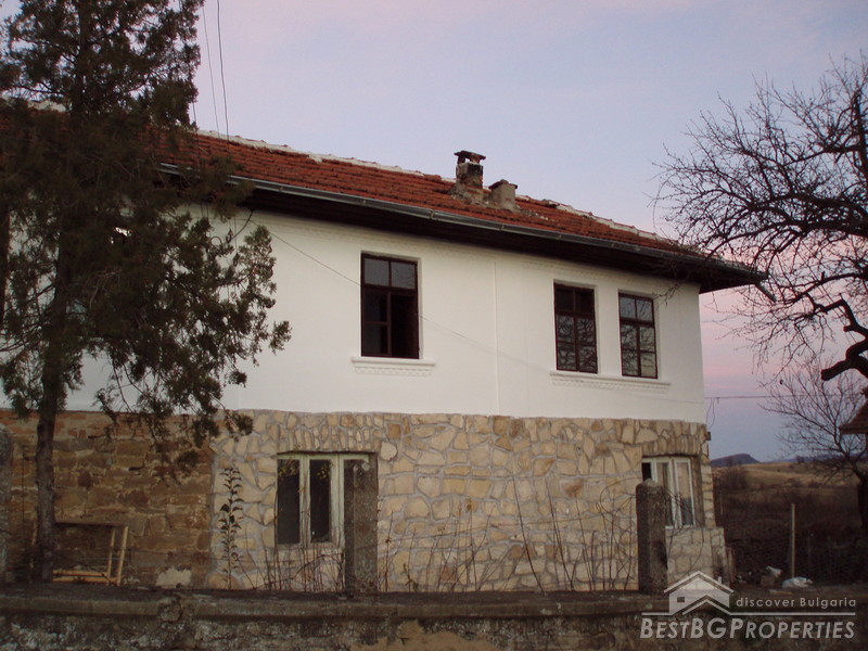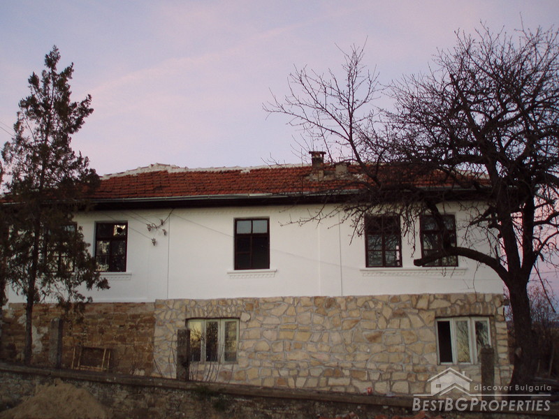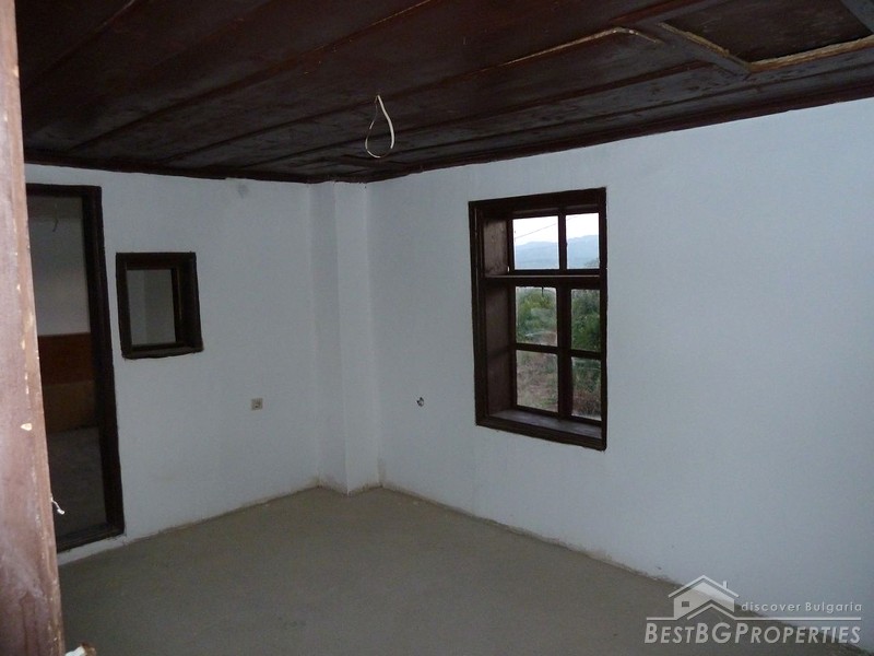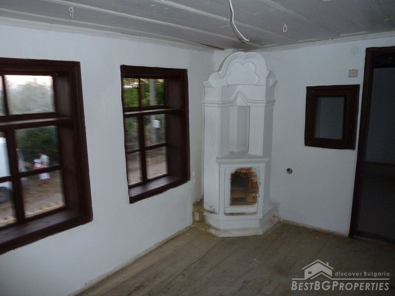 The house has total living area of 200 sq m distributed between two residential floors. It is pretty large with excellent location, south-facing view. On the first floor there are two rooms, stone-built tavern, kitchen with oven and another room. The second floor comprises 4 rooms and a wooden terrace. The yard is also very large, having total size of 4000 sq m. From the garden opens wonderful view of Stara Planina Mountain. The house was renovated in the typical for this region architecture and style. There are some repairs left to be done since the renovation has not finished completely.