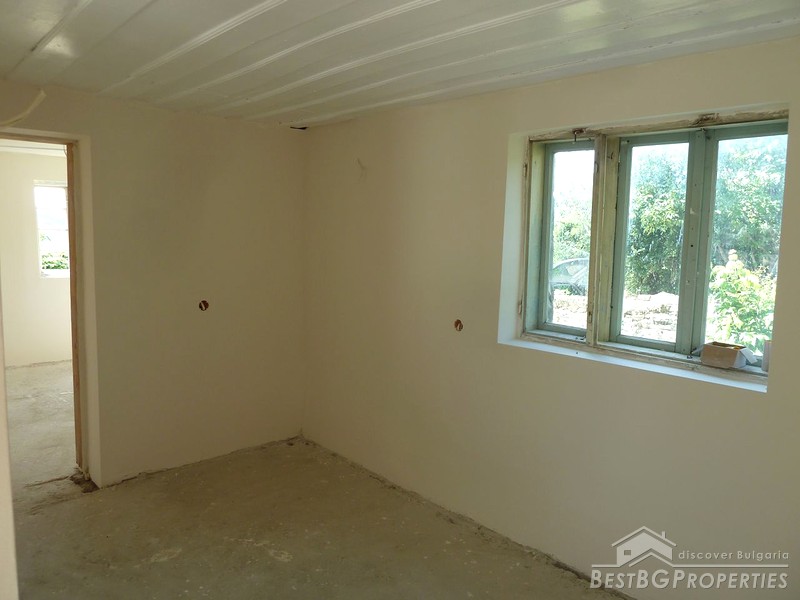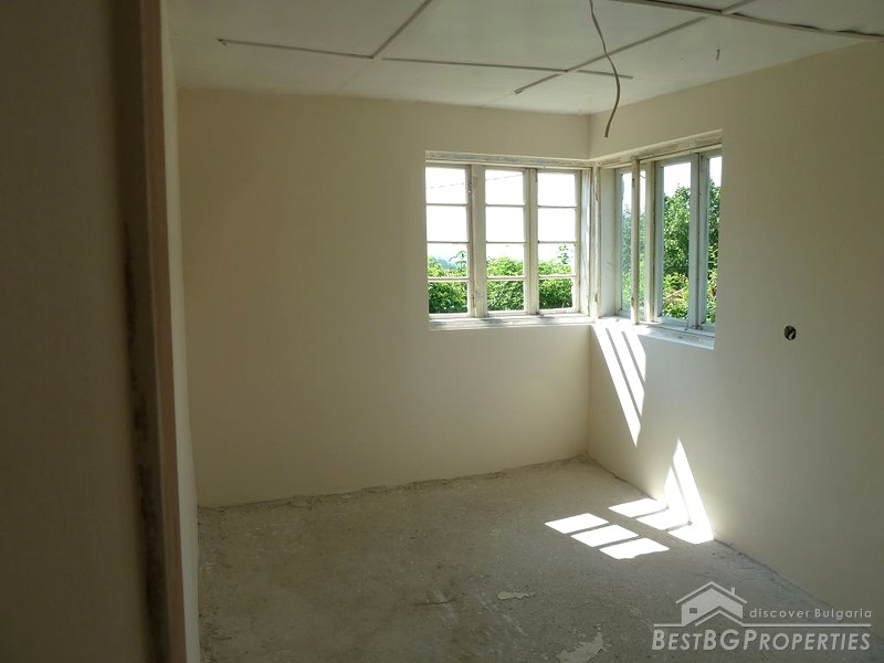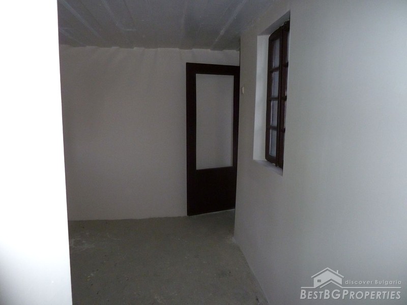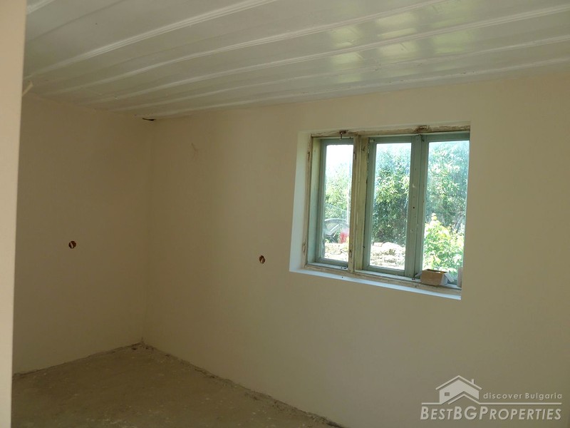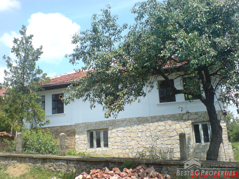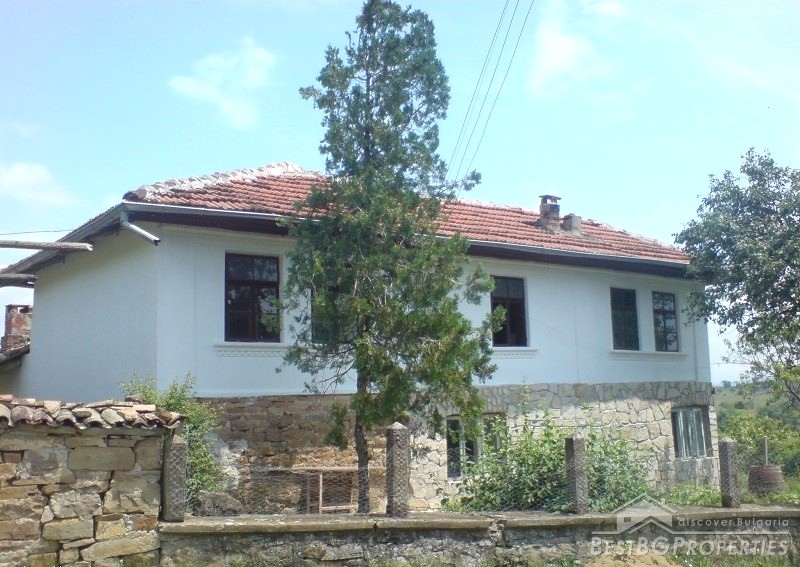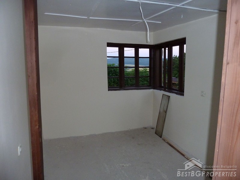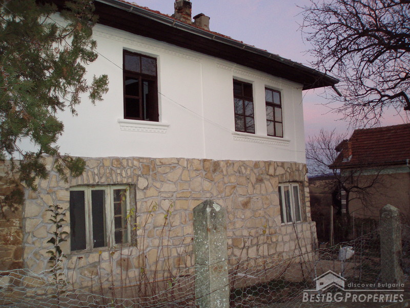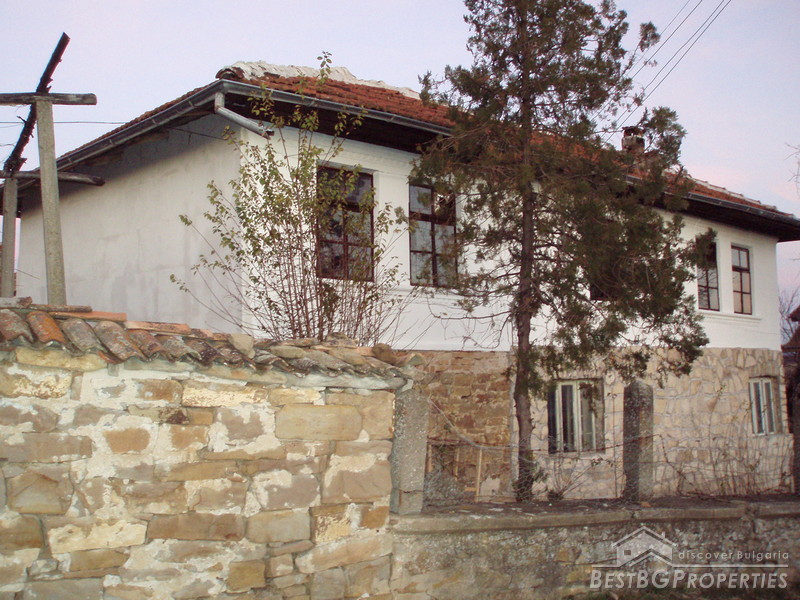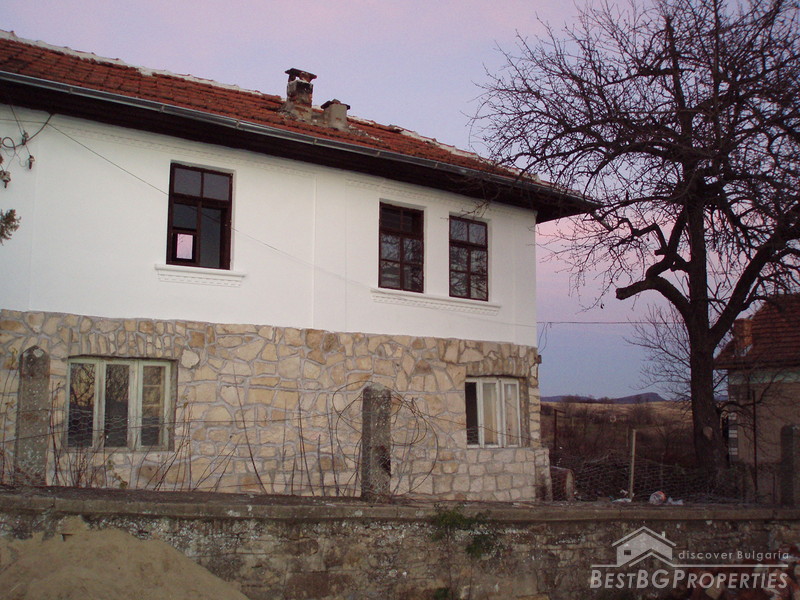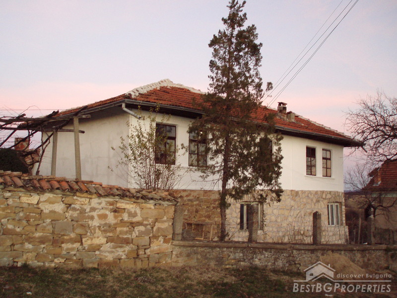 The house has total living area of 200 sq m distributed between two residential floors. It is pretty large with excellent location, south-facing view. On the first floor there are two rooms, stone-built tavern, kitchen with oven and another room. The second floor comprises 4 rooms and a wooden terrace. The yard is also very large, having total size of 4000 sq m. From the garden opens wonderful view of Stara Planina Mountain. The house was renovated in the typical for this region architecture and style. There are some repairs left to be done since the renovation has not finished completely.