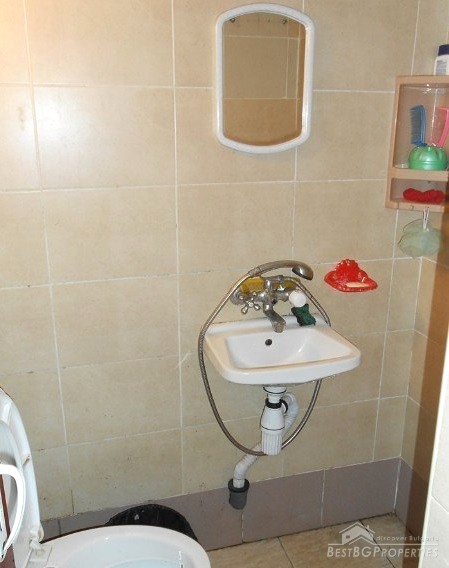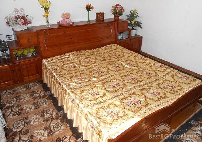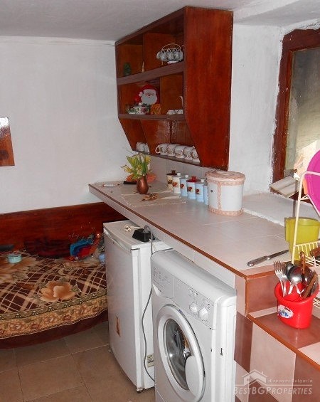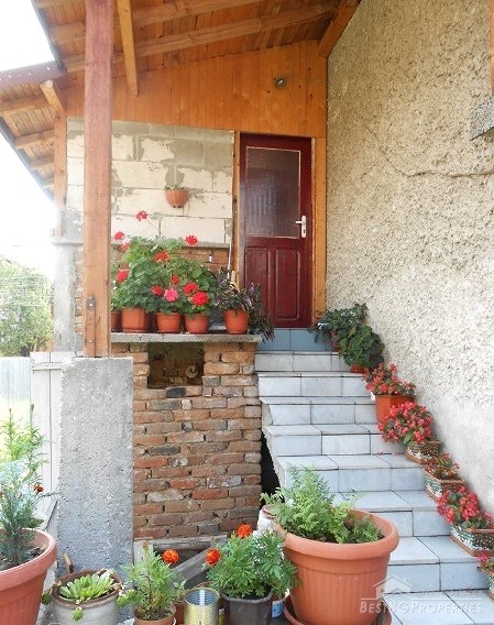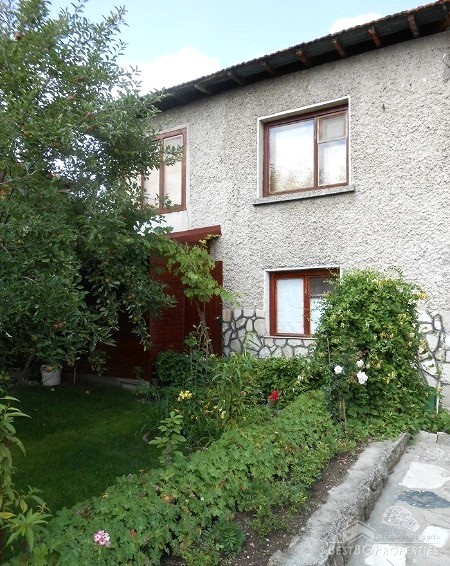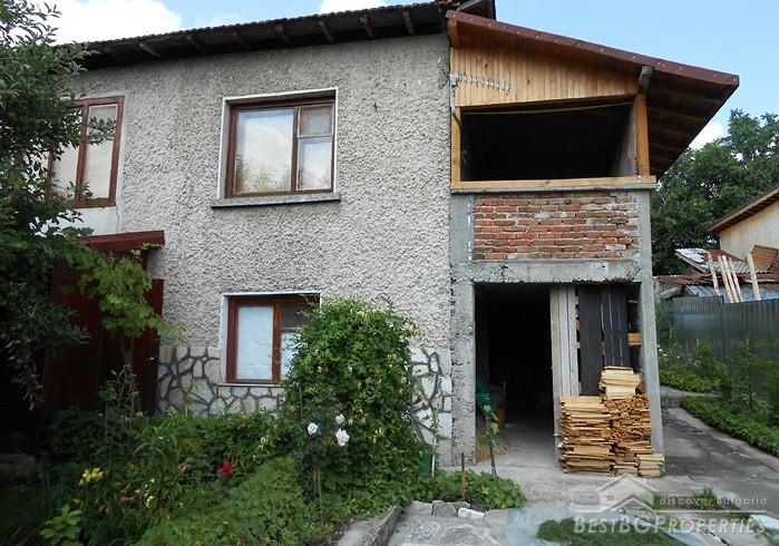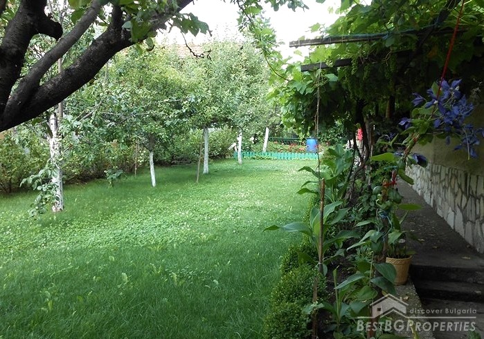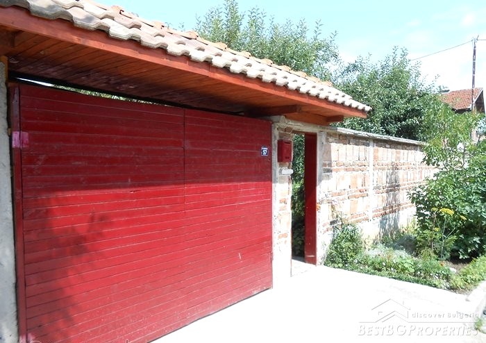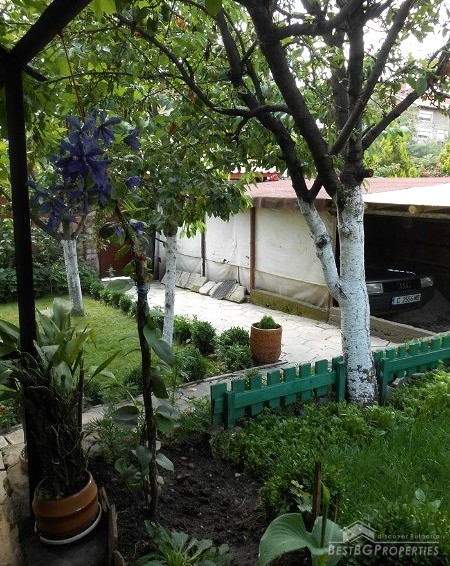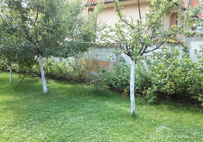 The house is two-storied and at its back side there is a summer kitchen with bedroom, bathroom with bathtub and a shed. The garden is 700 square meters, planted with fruit trees, nuts and currants. In it there are also two garages. The property is surrounded with a brick fence.