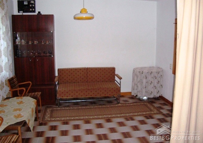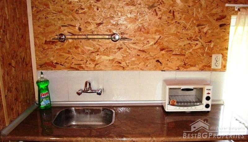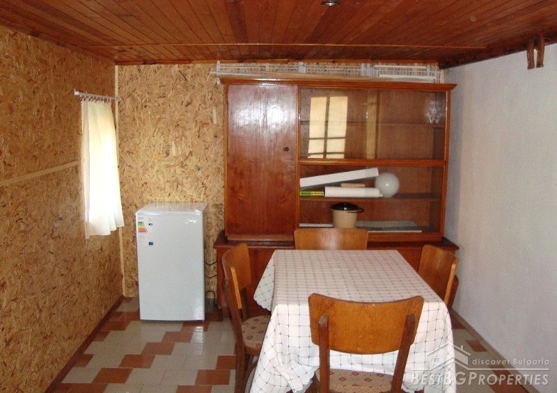 The house consists of a living room, bedroom, kitchen (terracotta), terrace and an attic premise. There is electricity, water for drinking and for irrigation with pump. The yard has total size of 1100 square meters. The property is surrounded with a new fence. There are 27 fruit trees, 250 sq m vineyard, three vines and ornamental shrubs. In addition there is a solid bungalow with shed - 25 m and a basement. The price includes the furniture.