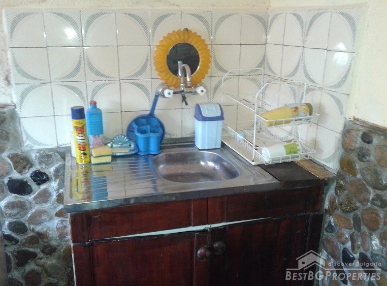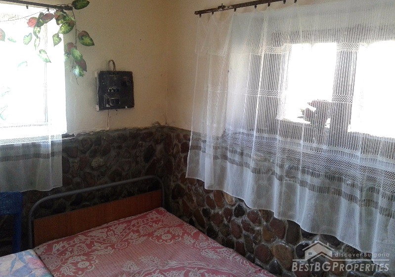 The house is on two floors. It has total living area of 69 sq m. On the first floor there is one room, kitchen and a bathroom. The second floor consists of three rooms and a terrace. The yard is 567 sq m in size. In it there is a well, few additional agricultural outbuilding, fruit trees and vines with delicious grapes.