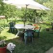 The size of the yard is 2500 sq m. In it, there is a solid outbuilding with a built area of 37 sq m. The garden has many different types of flowers, ornamental shrubs and trees - apples, pears, plums, cherries, sour cherries, quinces, walnuts, figs. There is also a geranium and an outdoor toilet.