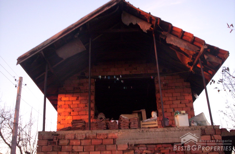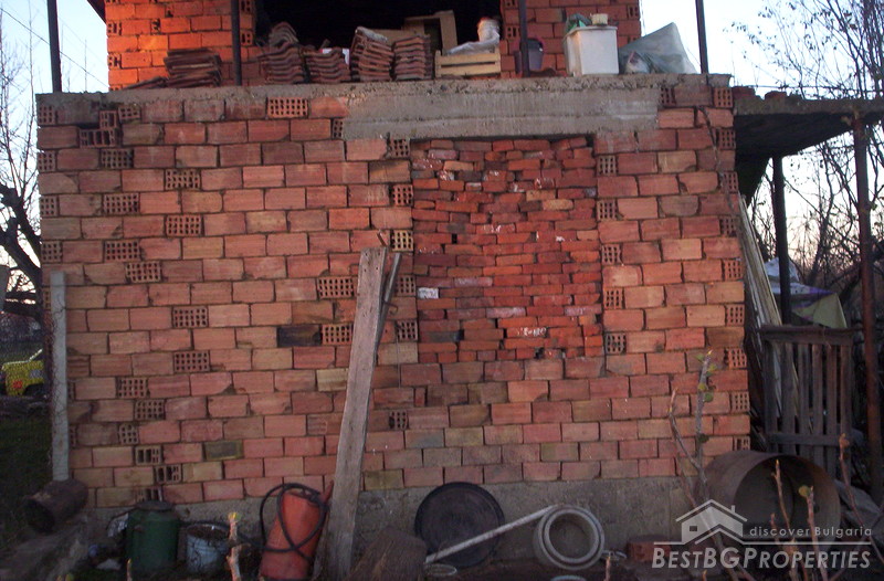 Next to it there is another building - a new house on 2 floors with a built area of 40 square. Not suitable for living and needs finishing.
