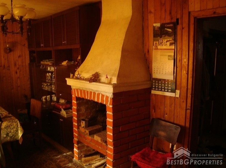 On the first floor there is a beautiful dining room with wood paneling, fireplace, suitable for heating and also for barbecue, comfortable and functional kitchen, a closet, and a WC with wet premise. Wood lined staircase leads to the second floor where there is a bright bathroom with WC, two cozy bedrooms and a living room with a spacious terrace with handmade railing. The terrace offers magnificent view. From the outside the second floor is lined with wood. There is a large basement and a spacious attic.