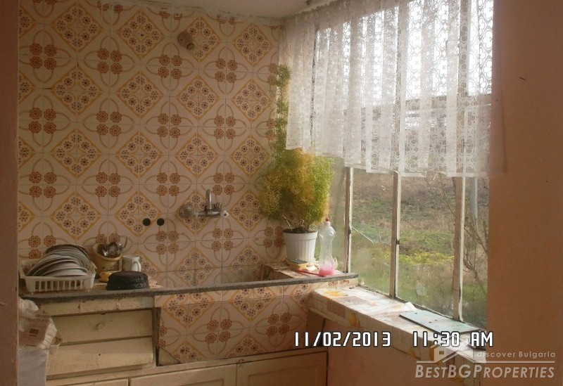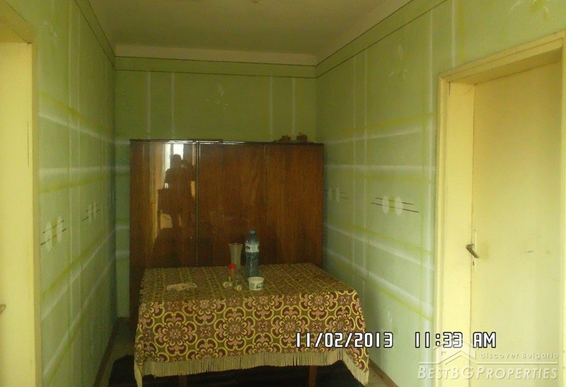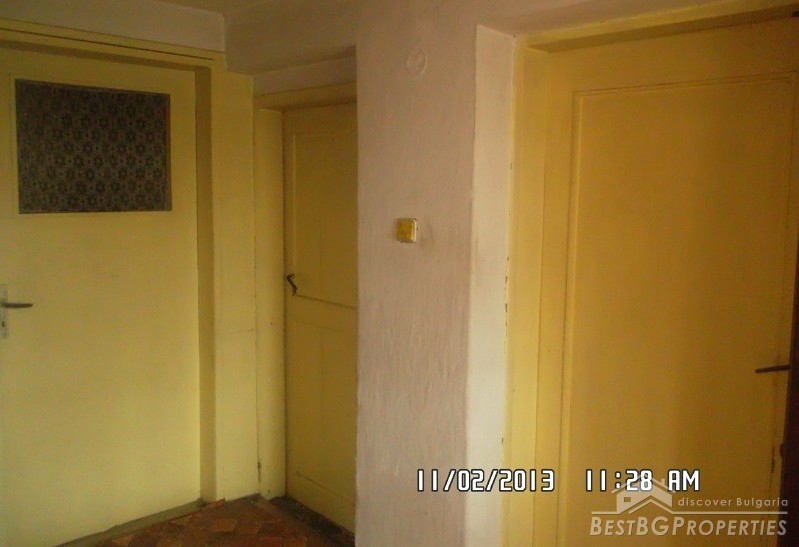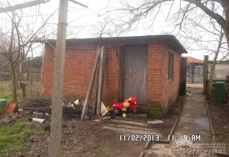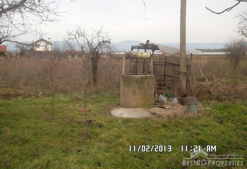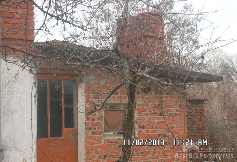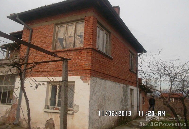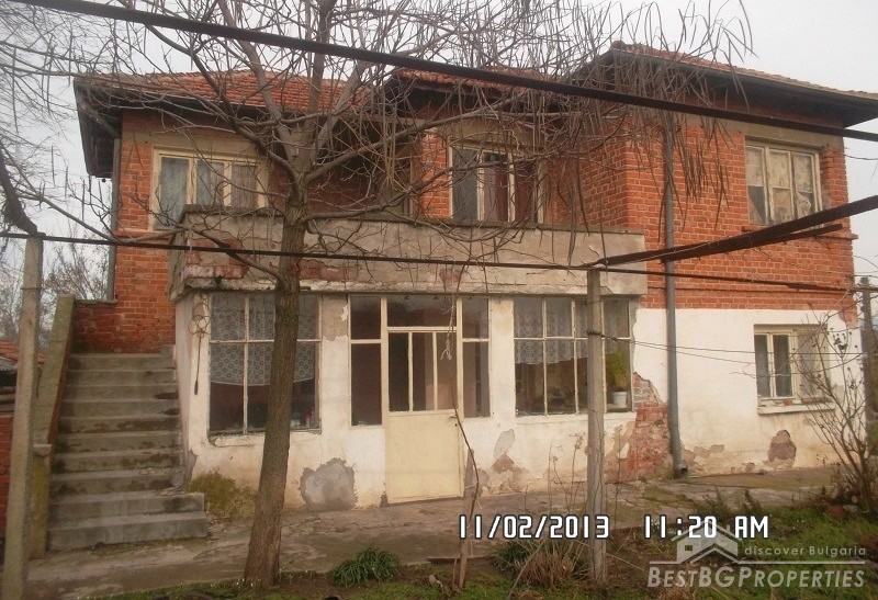 The house itself is two storied, brick built building with total living area of 80 sq m. Outside staircase connects both floors. The house is offered semi furnished, generally in good condition. There is electricity and water. The property is built on a really large plot of land with size 3000 sq m. In the yard there is a well for irrigational needs, few additional agricultural outbuildings and some fruit trees. The house is located in close proximity to the highway Trakiya.