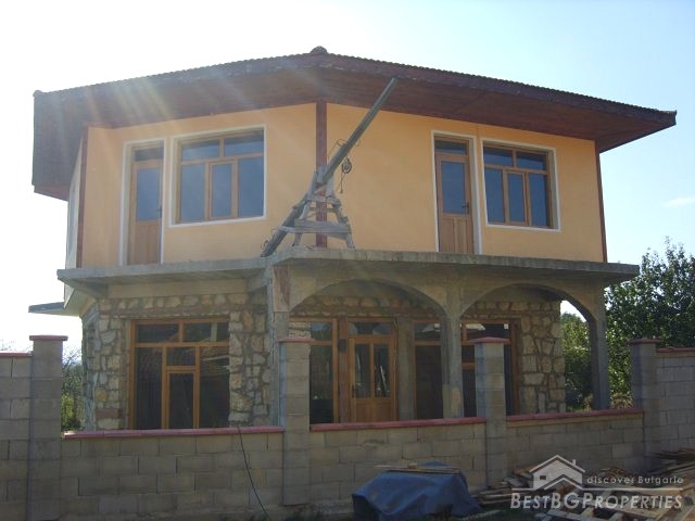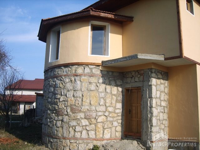 The house which is for sale has total living area of 144 sq m. It is two stories. The first floor is made out of natural stone and the second floor is made of brick. The house has very interesting design and it is very pretty. The first floor consists of a large living room with kitchen box and dining area. There is also a WC and bathroom on the same floor. The second floor consists of three bedrooms, two bathrooms with WCs, large balconies. The house is built on a plot of land - 400 sq m in size.