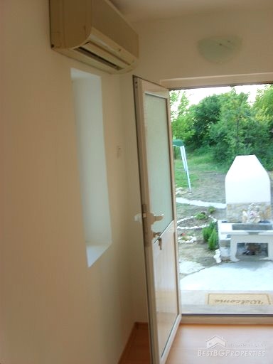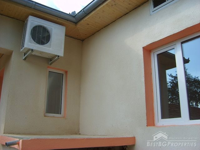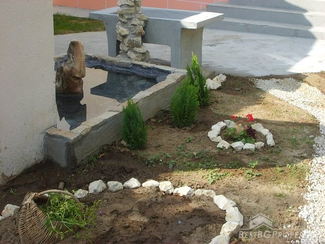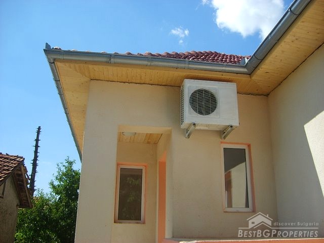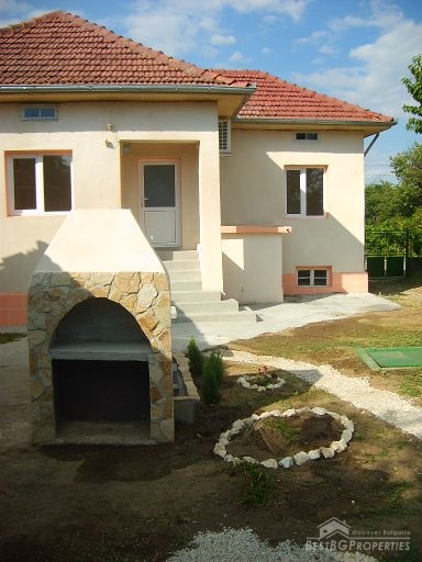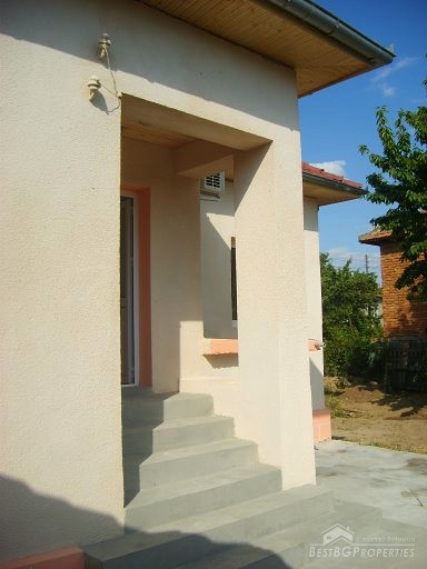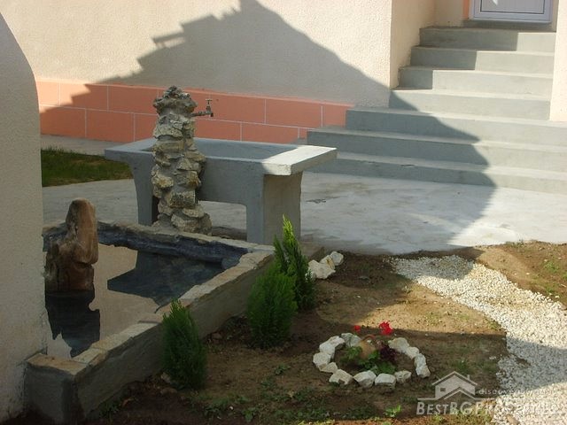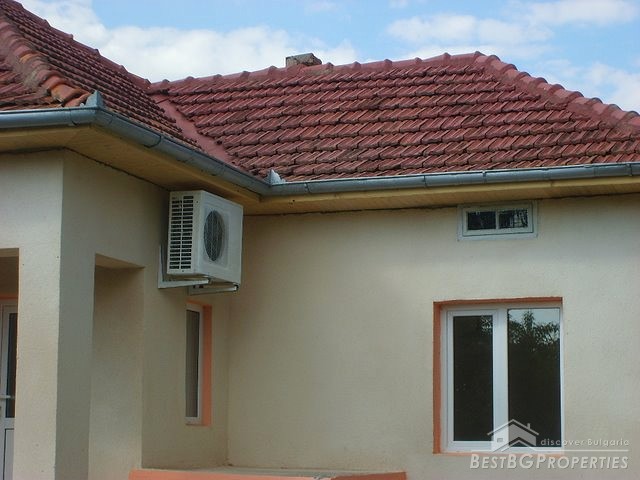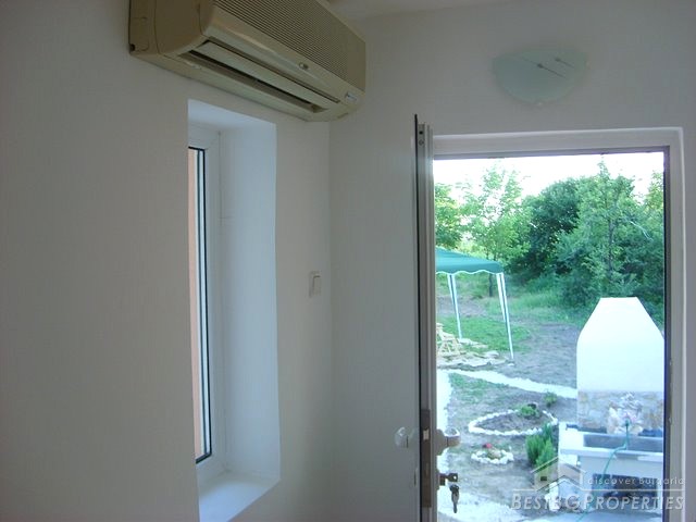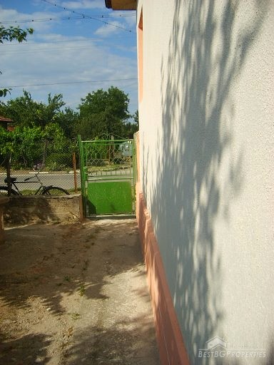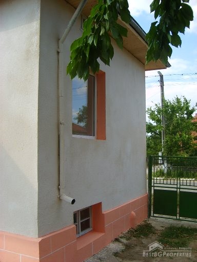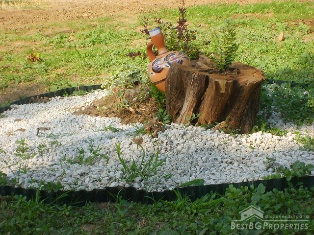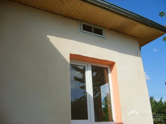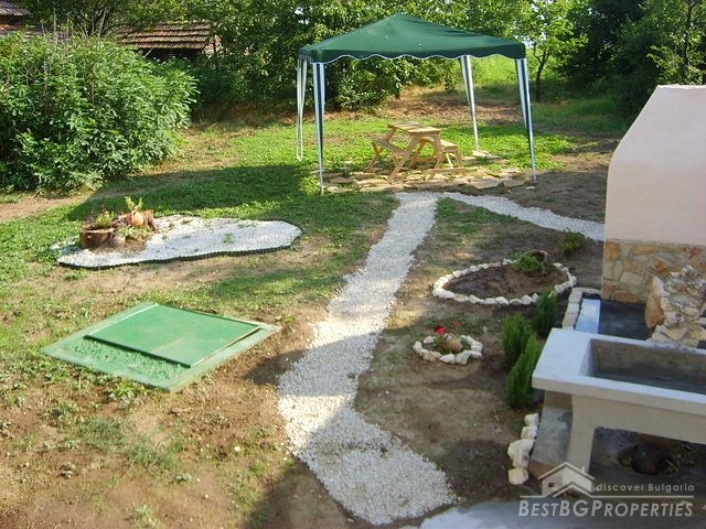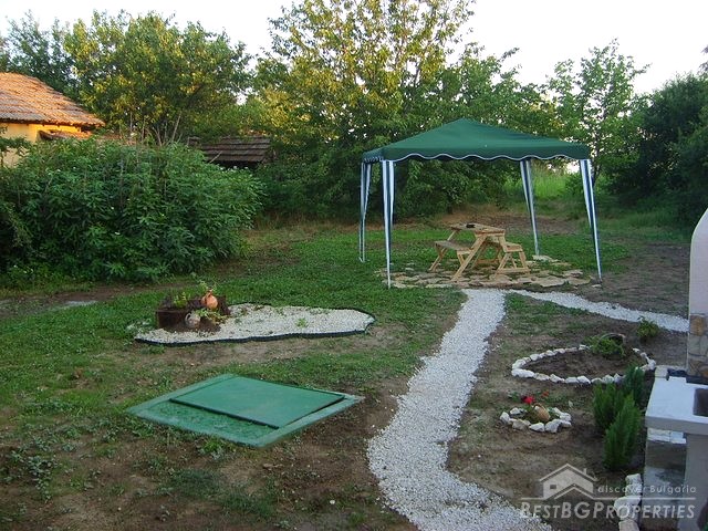 This house is located in a village close to Danube River. The distance to the town of Belene is 15 km; the town of Pleven is 30 km away; Sofia city is 160 away. The village is quiet and peaceful. There is a bus stop and regular transportation to the nearest towns and villages. The house is situated on a main asphalted road which guarantees easy access all year around. The house has one store with a basement and parking area. The total living area is 80 sq m and the basement is 10 sq m. It consists of corridor, 2 bedrooms, closet, kitchen, a bathroom and WC. The garden is large beautifully landscaped, planted with flowers, bushes and grass. It is 1000 sq m in size. There you will also find a well, barbeque, a decorative lake, covered resting area with table and benches, sprinkles. The house is in perfect condition, totally renovated. The walls are painted with latex, laminate on the floors. Switches and Light objects are installed. The bathroom is fully equipped - shower, sink, toilet, tiles on the floor and walls. There is a sink and cup boards installed in the kitchen. The window frames are PVC. The view from the windows is to the inner yard. The rooms are air conditioned. Electricity hot and cold water are provided.