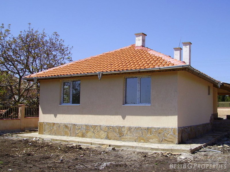 This newly built luxurious house definitely deserves your attention! The property is only 4 km from the nearest beach!!!The house is expected to be finished any moment. It will be completely finished inside but not furnished. The total living area is 200 sq m and it is spread on 1 floor in 4 rooms. There is a living room with a kitchenette and dining space, 3 bedrooms, 3 bathrooms with toilets, a wet room and a porch outside. Water and electricity are provided in the house. Telephone line, cable TV and internet are available in the village. The floors will be laminated and the walls painted. The bathrooms will be all tiled. The joinery will be PVC. The garden is 525 sq m big and there is a parking space, a flower garden and the rest is tiled. The village is 4 km from the beginning of the city of Bourgas and the International Airport which is on the other side of the city would be 15 minutes driving from the place. Only 5 km from the village is where the Mandra Lake is- the biggest on the Balkan Peninsula. This charming place is perfect for all-year around holidays! Take advantage and contact us regarding this property!