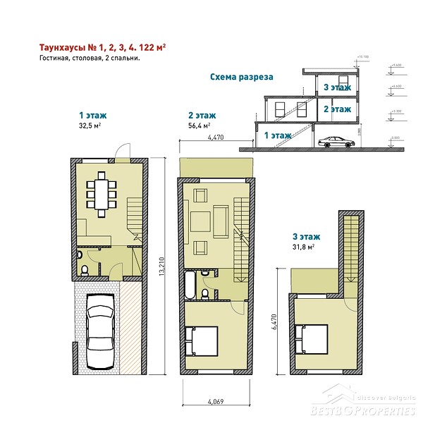 The coastal area is planned to be organized with venues for outdoor activities, barbecue, playgrounds for the children, and more. Offered for sale are houses and townhouses.