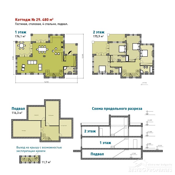 The whole project has one same architectural style. On the beach there are going to be built 14 cottages ranging in size from 267 to 480 sq m and 15 townhouses ranging from 122 to 167 sq m.