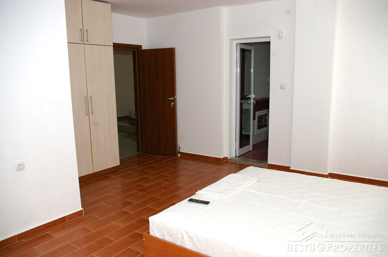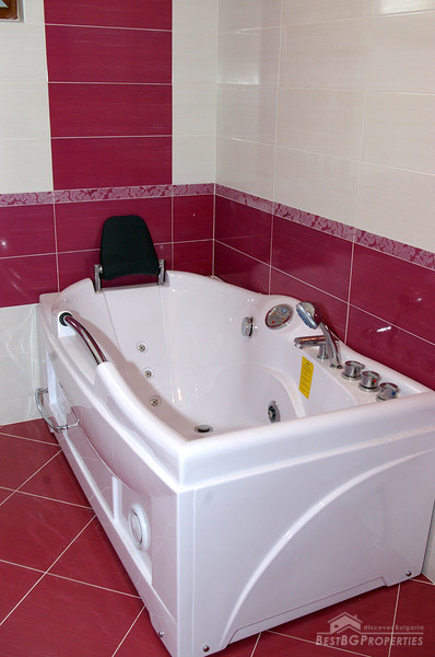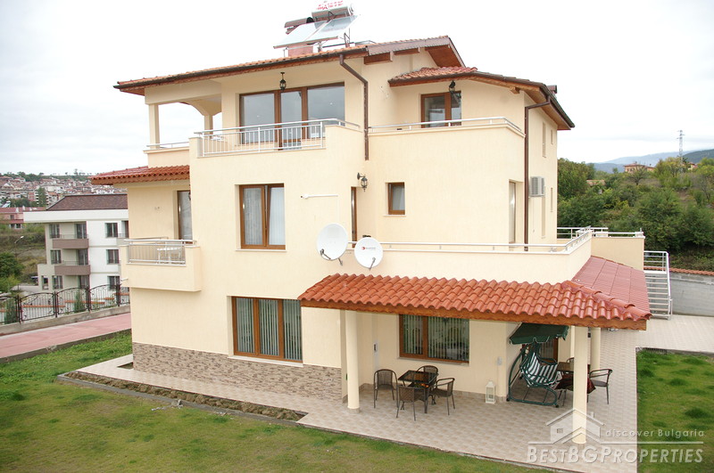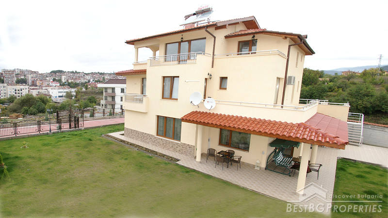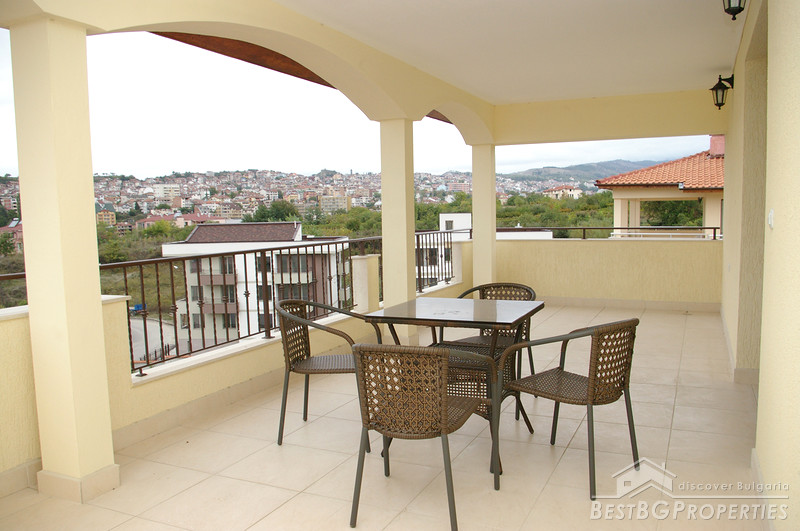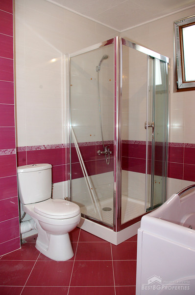 Each house has total living area of 380 sq m and is separated from the others, comprising its own yard 750 sq m in size, and a garage for two vehicles. Each house consists of three residential floors - first floor includes a kitchen, dining, living room and a cabinet. From the lounge of the first floor there is an inside access to the garage. On the first floor also there are two storage premises and a WC. The second floor consists of three bedrooms, each with own sanitary premise (bathroom with WC), large balcony surrounding the whole house, wet premise. The third floor comprises a studio consisting of a living room with a sanitary premise, balcony and a panoramic veranda with size - 40 sq m from which opens amazing view over the town and the Pirin Mountain. Also there is a bedroom for guests with bathroom WC and separate balcony.