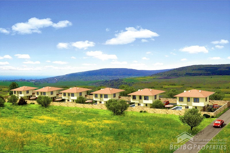 This beautiful project is a small private development of 6 houses in separate plots together in traditional Bulgarian architecture style, complete with high standard fixtures and fittings. The small complex of only 6 properties is perfect for holidays, long term residence or retirement. The luxurious complex is located in a nice village, 19 km north of Varna town, 5 km away from the beach and 10min drive to the famous Bulgarian resort Albena. Each house has 3 bedrooms, double glazed, A/C, fully fitted kitchen, fireplace and is delightfully decorated with village style ceramic roof tops and external stone features. Beautifully landscaped gardens surround this exceptional feature which will simply take your breath away! Within a 15 minute drive to the Lighthouse golf course and a 15 minute drive to Varna this is an ideal place that you could enjoy as either a holiday home or a permanent residence.