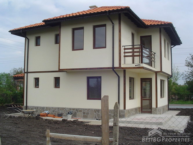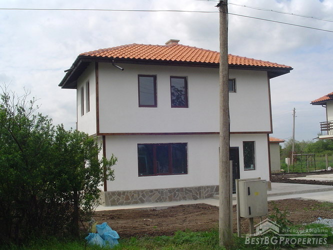 We offer you two detached newly built houses situated in a charming big village in Burgas area about 20 km far from the sea! The houses are neighbouring and similar ones. Each one offers 120 sq m living area together with 30 sq m veranda and small garden of 410 sq m. The first floor of the houses consists of big living room, sunny kitchen with dining room, utility room, bathroom/WC and entrance floor. In front of the house is the covered veranda. You reach the second floor through inner staircase. Upstairs there are two spacious bedrooms, big bathroom/WC, entrance hall and terrace.