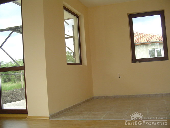 One of the houses is completely finished with terracotta and laminate flooring, PVC windows, interior MDF doors and armoured front door. The price for this house is 67 500 euro.
