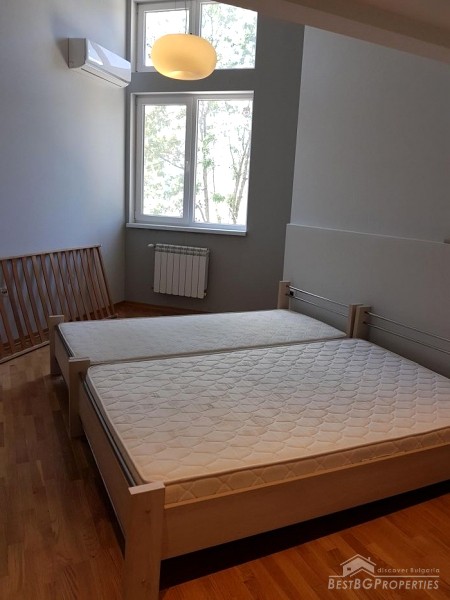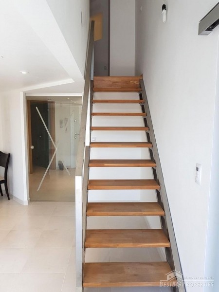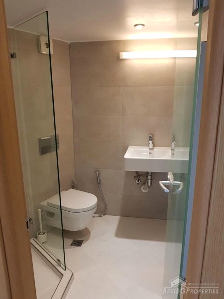 The stage of completion is turnkey - 5 chamber German PVC windows, metal front door, 80 liters electric boiler, gas boiler, inverter air conditioner in each room, Internet, two of the bathrooms have shower cabins and the third has a bathtub, Italian granite tiles, Interior designer doors, two of the interior doors are sliding with an electric opening and much more.
