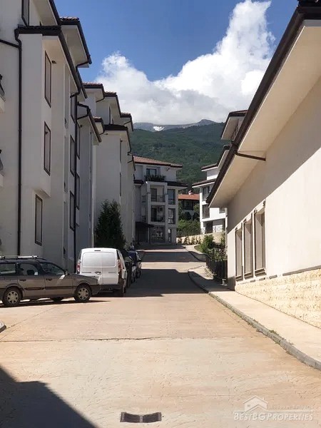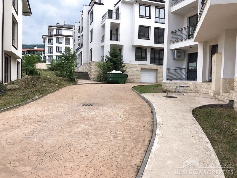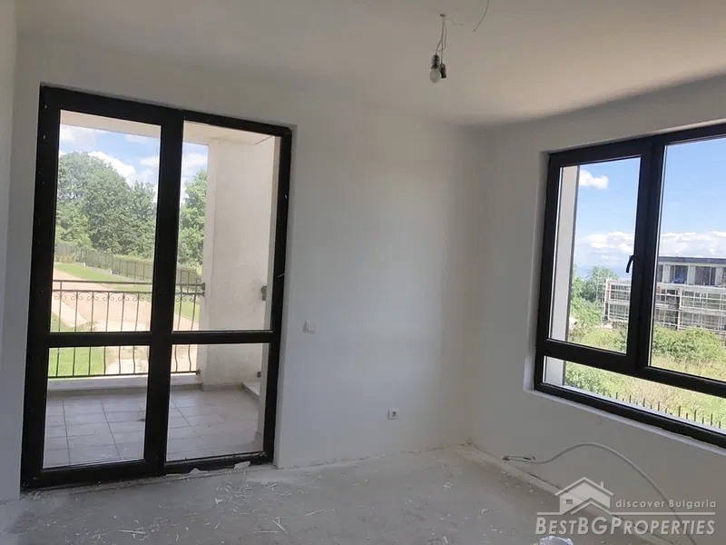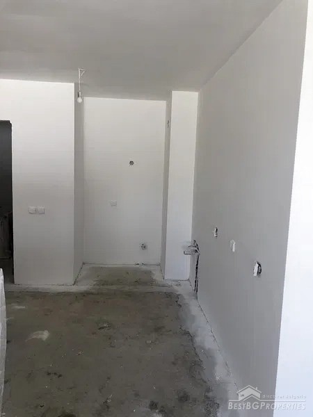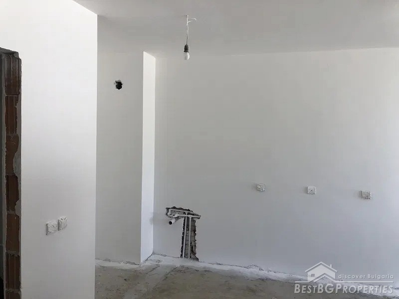 The apartment is gasified. It is sold finished to meet the Bulgarian standards (on plastering and putty), however there are some additional improvements like fine plaster and white wall paint. The building has luxurious shared parts.