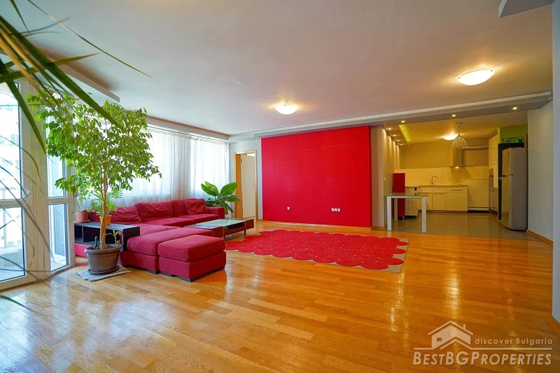 The apartment is sunny, light, with great view of Vitosha Mountain. It is equipped with French windows, three-layer luxury parquet, Italian granite in the bathrooms and the kitchen. There is air conditioning and gas heating.