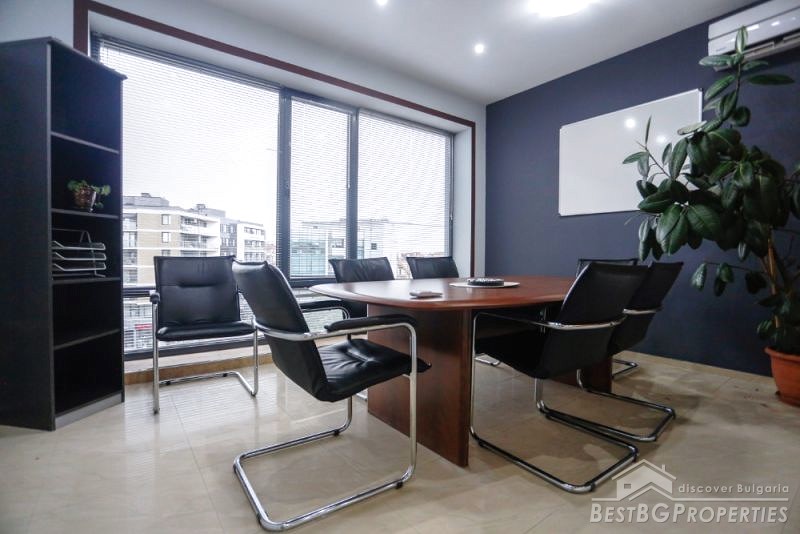 The office consist of a large room (reception) from which there is access to a manager's office, a meeting room and two separate offices. It has 2 WCs, 2 bathrooms, an equipped kitchen and three spacious terraces overlooking Vitosha Mountain. The office is located on the sixth of the seven floors in the building, with a separate elevator.