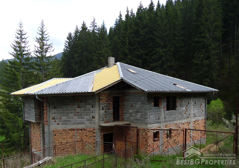 We are glad to present to you this unfinished, three-storey, brick house for sale, located in a picturesque mountain village, only 8 km from the ski resort Pamporovo.