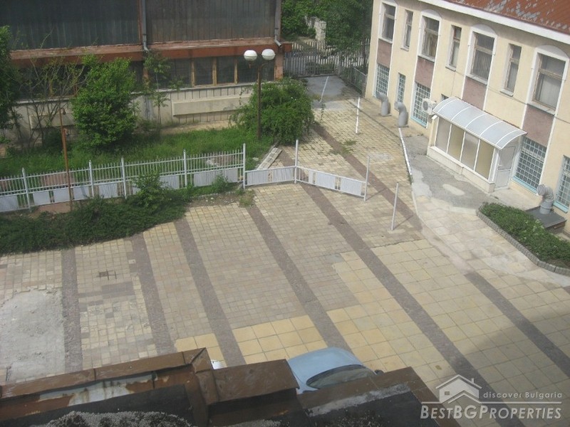 The area has very good infrastructure - electricity, water supply, area lighting, asphalted roads, sewerage, communications and others. The property has a unique architectural style and is in good condition. It consists of four floors with a height of 3.50 meters, basements, yard with asphalted parking lot. The basements are over 400 square meters. Every floor has a number of sanitary facilities, lobby with lift platform, administrative offices, work spaces, connected by wide corridors. The walls are covered with latex paint, the floor is mostly linoleum. Lighting is by sanitary norms.