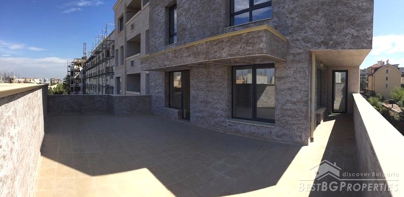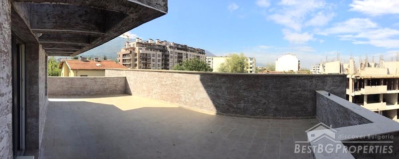 The apartment has clean living space of 96.09 sq m and total living area of 163.39 sq m. The area also includes a large roof terrace of 50.12 sq m. The property consists of two bedrooms, two bathrooms, laundry room and a living room with kitchen. The exposure is towards southwest, with wonderful view of the Vitosha Mountain. The apartment is on the third floor out of six. The property is supplied with gas heating.