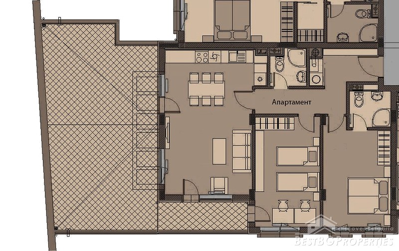 This is a large, two-bedroom apartment for sale in the city of Sofia, about 30m from Cherni Vrah Blvd. and 500m from the Mall Paradise.