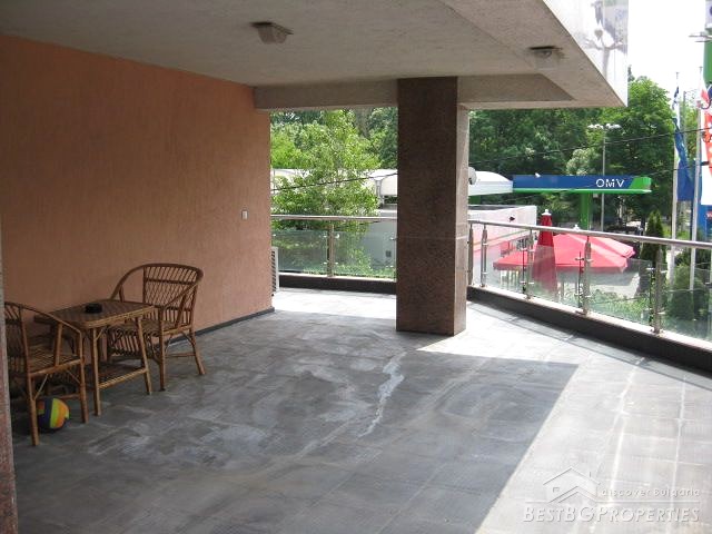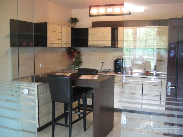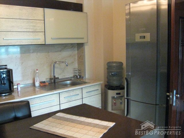 The exhibition of the apartment is southeast. The finishing is turnkey - quality granite tiles and laminate, latex, etc. The layout inside is the following: modern equipped kitchen box, large reception with several workplaces, two non-transitional working rooms, luxurious bathroom with toilet, second toilet and a spacious terrace around the whole apartment.