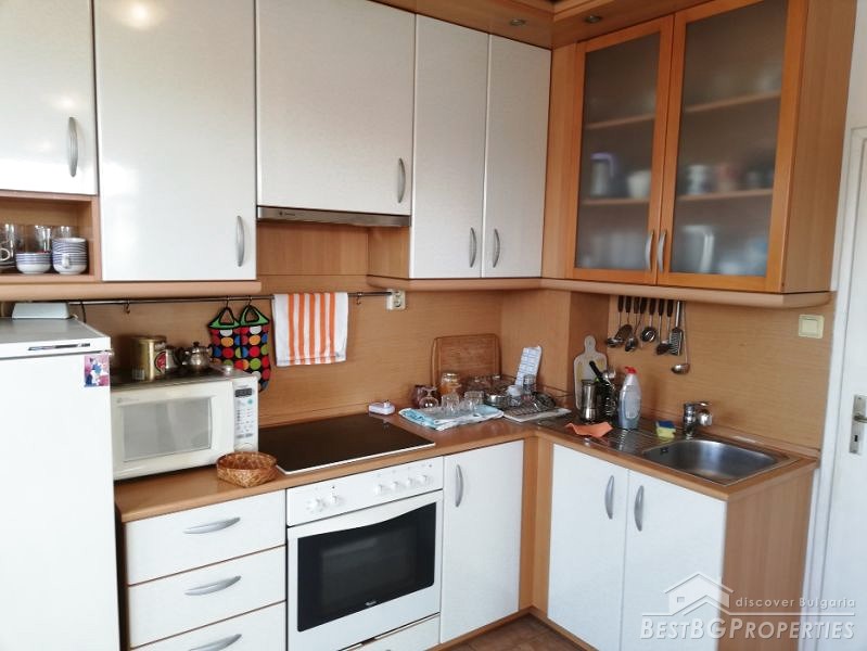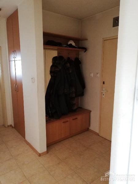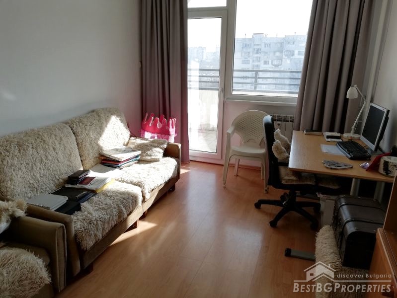 The apartment has eastern and southern exposure. It is extremely warm and bright. The floors in the rooms are finished with laminate. The walls and ceilings are latex painted. The wet rooms and balconies have faience and terracotta. The window joinery is PVC. The apartment is offered with all of the furniture available, it is suitable for renting out.
