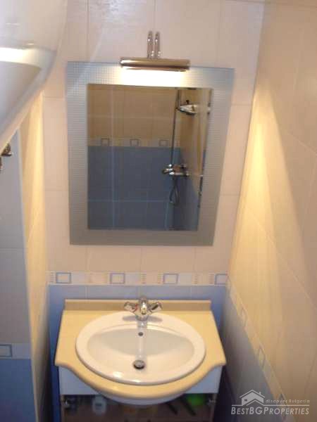 The finishing includes armored door, interior doors MDF, suspended ceilings with quality lighting, granite, tile and laminate flooring, luxury staircase to the second level with oak steps, two Japanese air conditioners Panasonic, MDF furniture in the living room, MDF kitchen with appliances BOSH, refrigerator and washing machine GORENJE, digital boiler AEG, PVC joinery REHAU, sound insulation, etc.