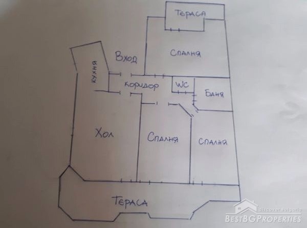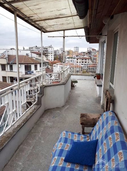 The apartment has the following layout inside - three bedrooms without transition, a living room, a kitchen, bathroom and separate toilet, a large basement. Two of the bedrooms and the living room have access to a large south-facing terrace. The third bedroom has north exposure and its own balcony. The apartment benefits with unspoiled panorama of the sea and the city.