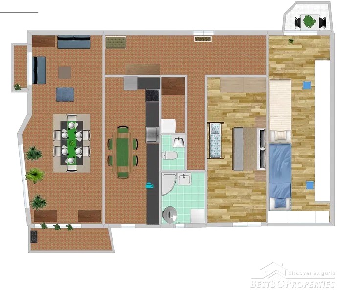 The building is near the new Church of Varna (400 m away), on a quiet street. There are schools and kindergartens in the immediate vicinity, as well as many shops.