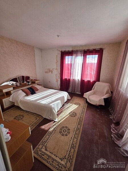 For sale is a spacious and perfectly maintained three-storey house with a basement level and a garage, located in a quiet and peaceful neighborhood in Mezdra. The property combines solid construction, functional layout, and move-in readiness.