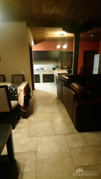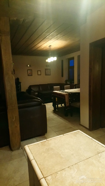 The small house was built in 2002. The walls are thick - 60 cm, stone from outside and brick from inside. This thickness provides a comfortable temperature – cool summer and warm in winter. The house has a living room with kitchen - 35 sq m and a big shed. There is a fireplace with oven. On the other side of the shed there are two bedrooms with bathroom and a toilet. The window joineries are wooden.