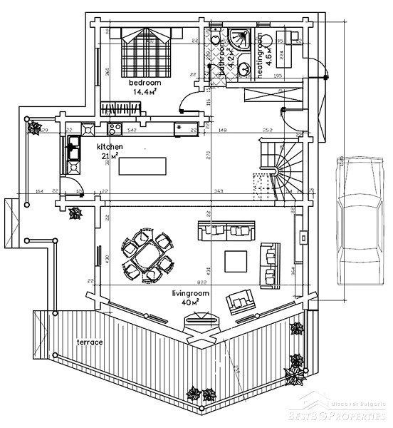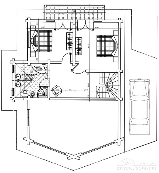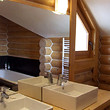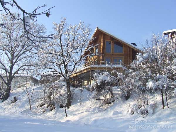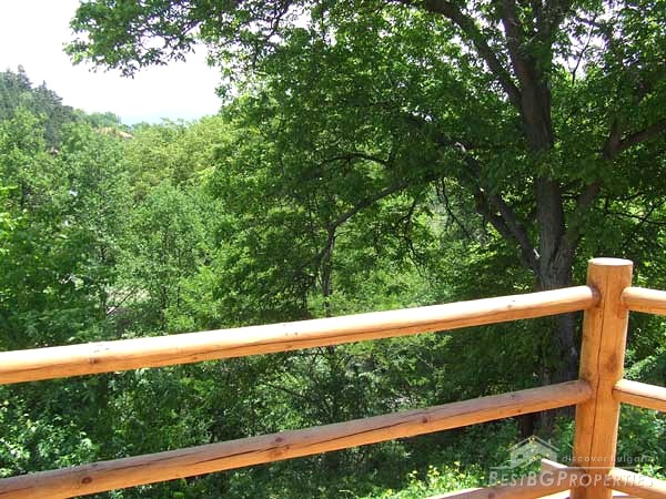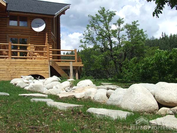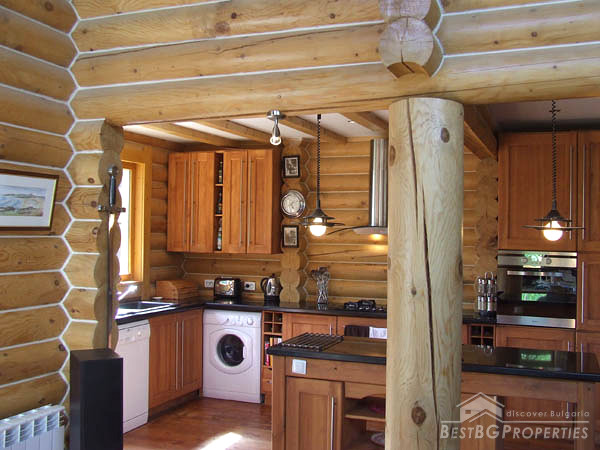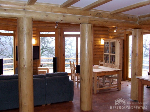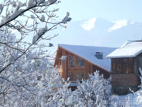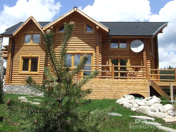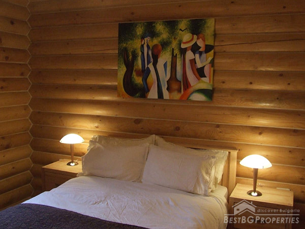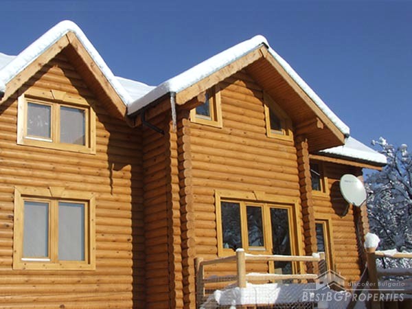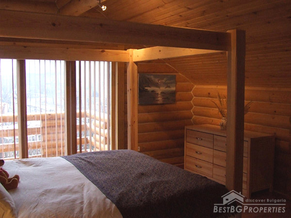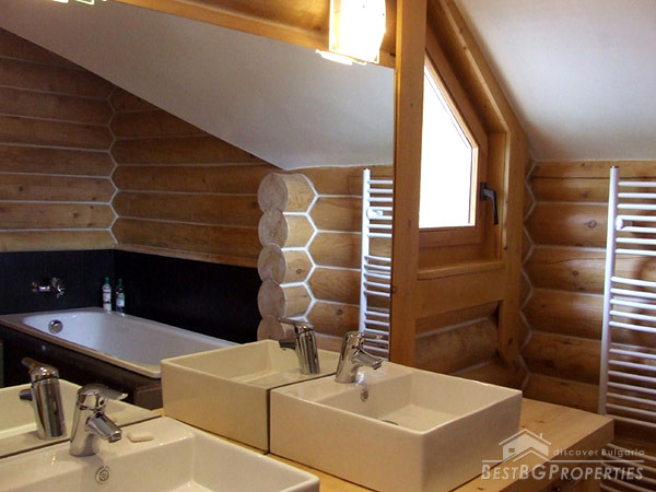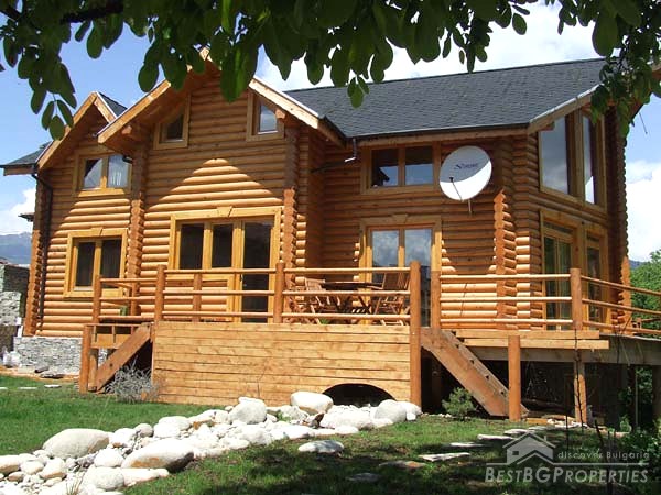 It is idyllically situated on its own private, 600m² large, plot of land on the outskirts of a nice, picturesque village near Bansko. There is a small river near the property which can be heard running from the chalet. The log is directly overlooking a pine forest, in less than 100 meters away. The view from the beautiful wooden terraces is just amazing.
