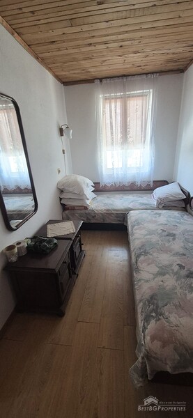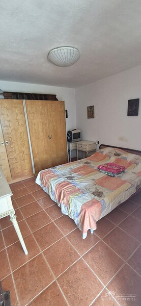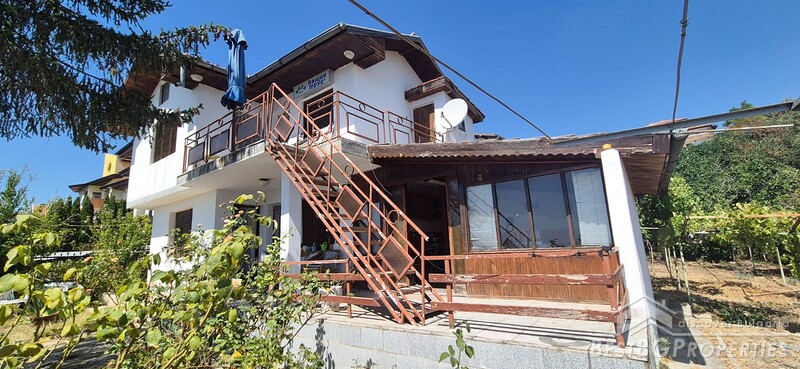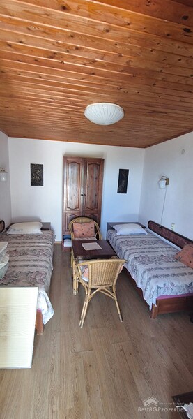 The interior is thoughtfully arranged to accommodate both personal use and guest stays. The ground floor includes a spacious living and dining area, a kitchenette, one bedroom and a bathroom. An external staircase leads to the upper level, which is divided into two independent units: a studio with two bedrooms and a bathroom, and a separate apartment consisting of two bedrooms, a bathroom and a large panoramic terrace. Altogether, the villa offers five bedrooms, three bathrooms and capacity for up to 16 people, making it an ideal family retreat or a lucrative guesthouse investment.