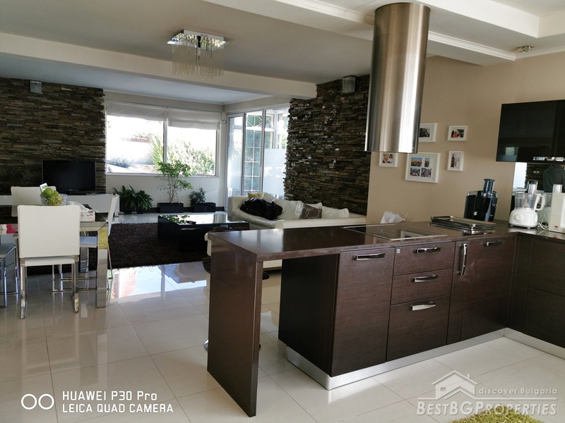 The property consists of very well landscaped garden of 1074 sq.m and a house with living area 242 sq.m and garages for 3 cars .