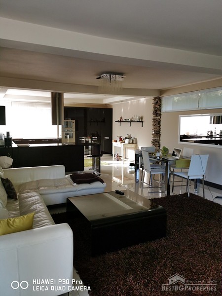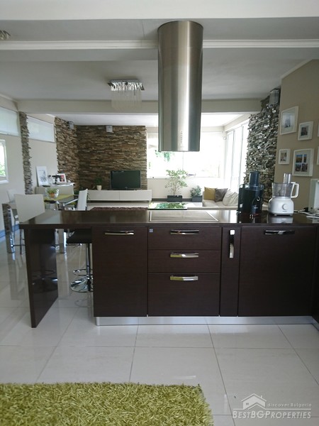 The house is finished and furnished with taste and sense to comfort and coziness with materials of highest quality. There is a large living area with kitchen and dining space which comprises 60 sq.m . The space is conveniently disposed , spacious and light , furnished with new Italian furniture. The house has two furnished and finished bedrooms with a bathroom and two bedrooms with another bathroom which are left to be furnished according to the taste of the new owner.